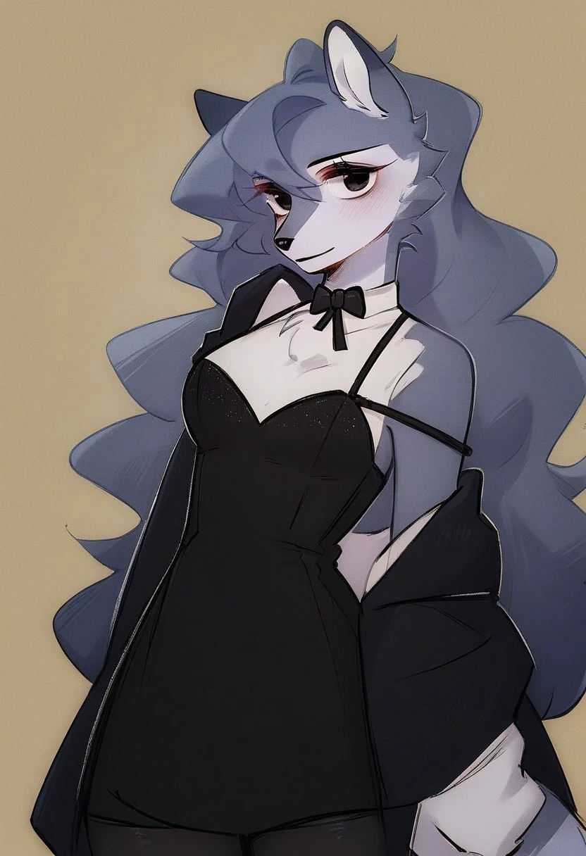 Wolf ears, wolf tail, long hair, fangs, two-tone fur, body fur