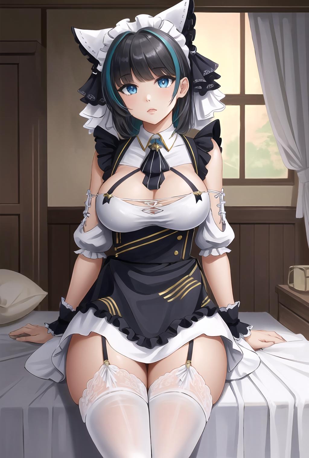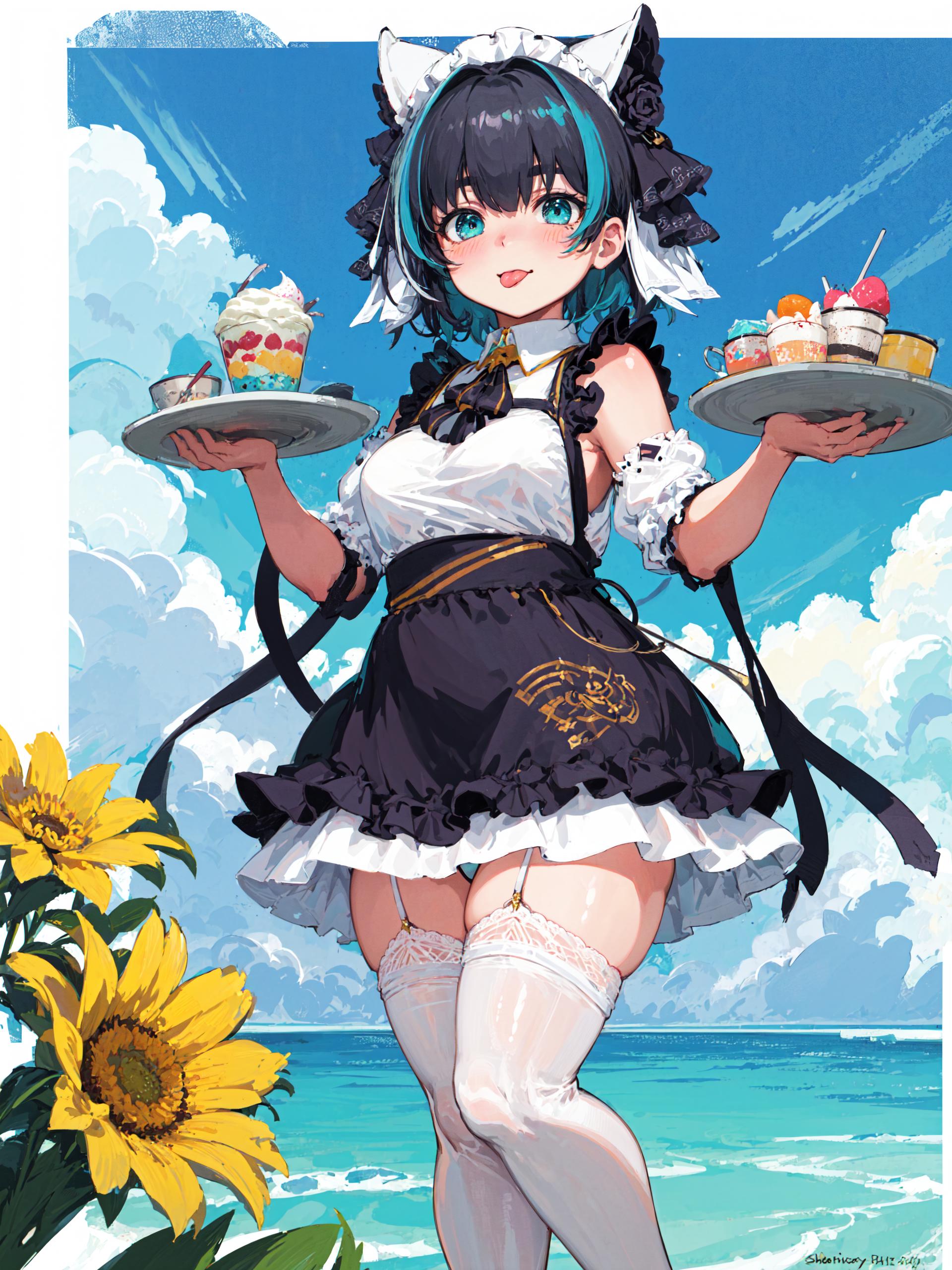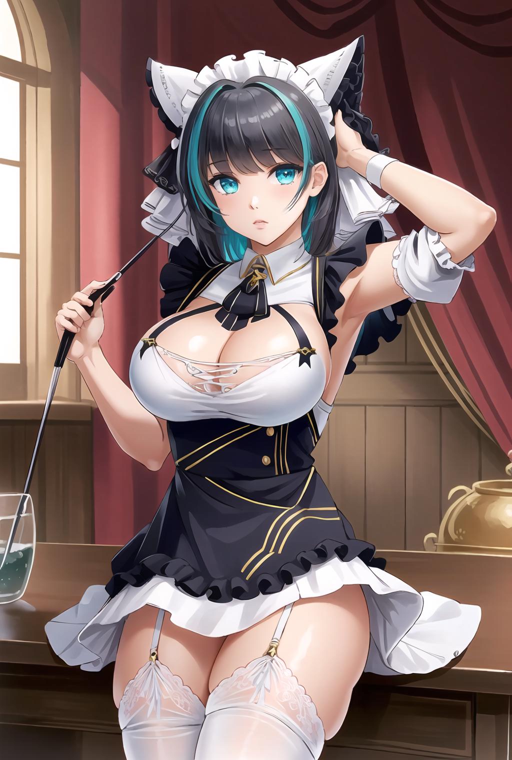 Main tag: For outfit: 4shdress, maid, frills, detached sleeves, white thighhighs, garter straps