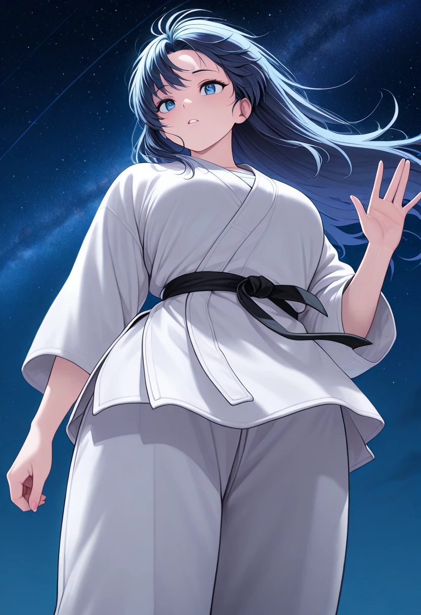 AkaneChan, akadougi, 1girl, dougi, martiala arts belt, black belt, solo, long hair