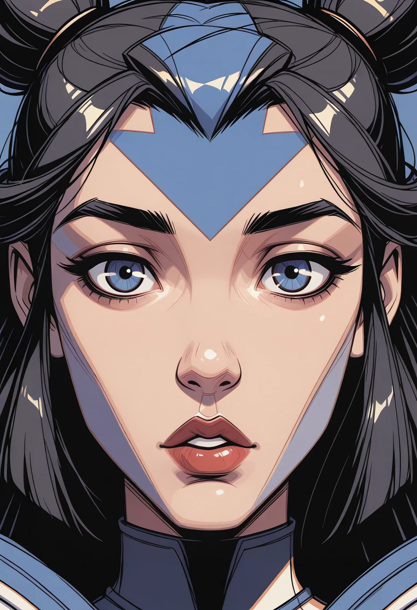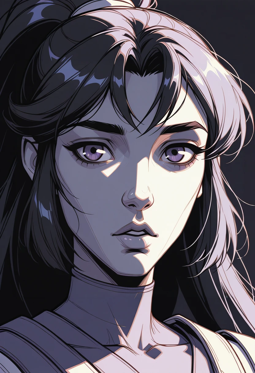 neon shatter, neon shatter art, neon shatter, chroma split portrait, vivid geometric face, digital art, illustration, graphic novel style, pop art influence, vector art aesthetic, stylized portrait, duotone effect, high contrast lighting, vibrant colors, geometric shading, hard shadows, flat color areas, bold outlines, clean lines, sharp line art, stylized features, ultra detailed, dramatic eyeliner, defined eyebrows, close-up portrait