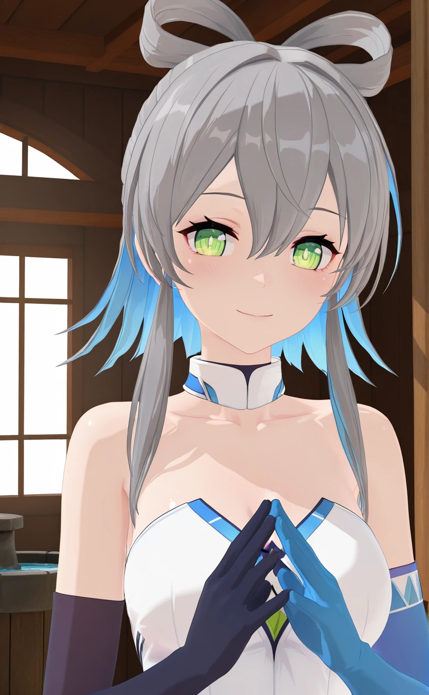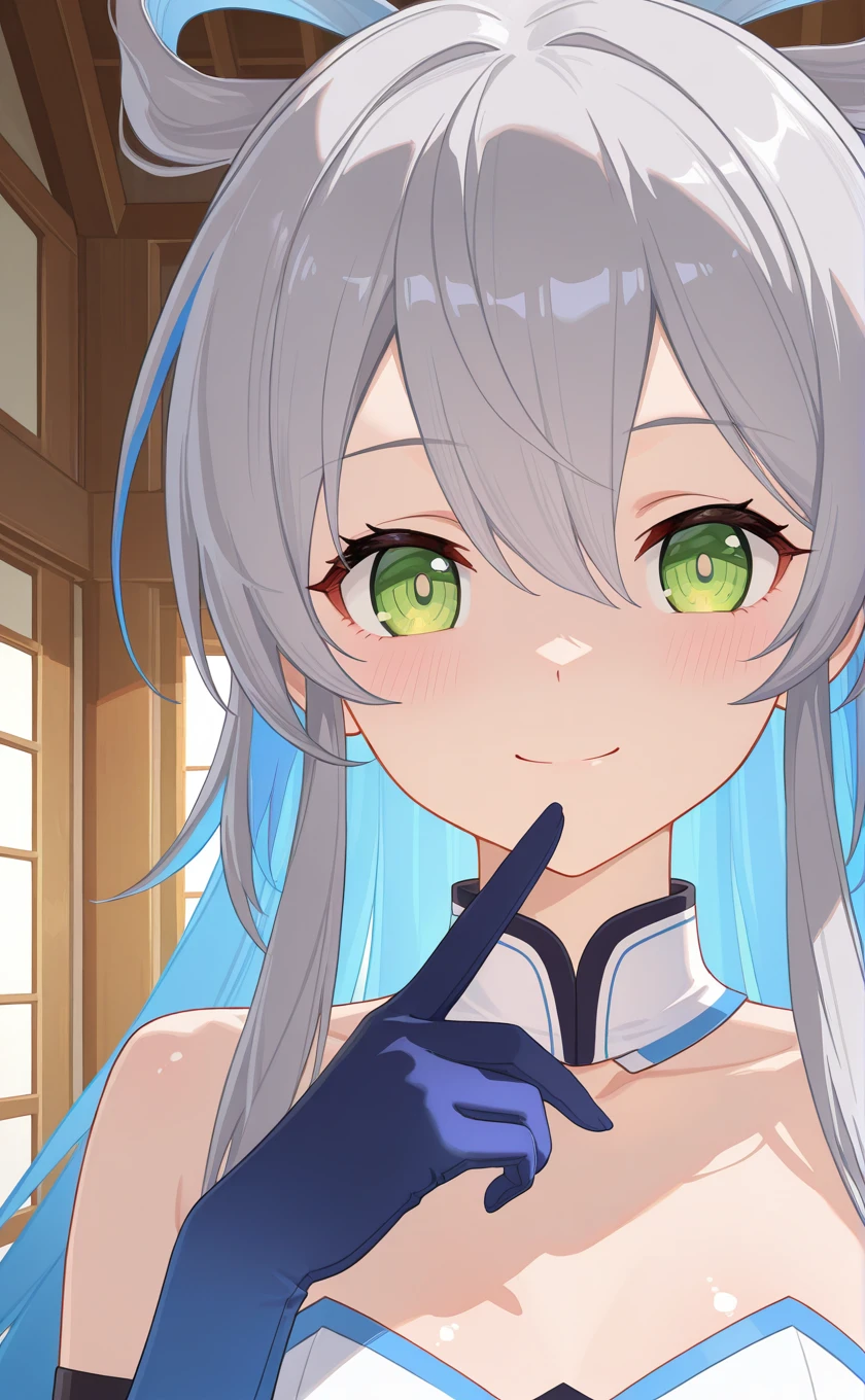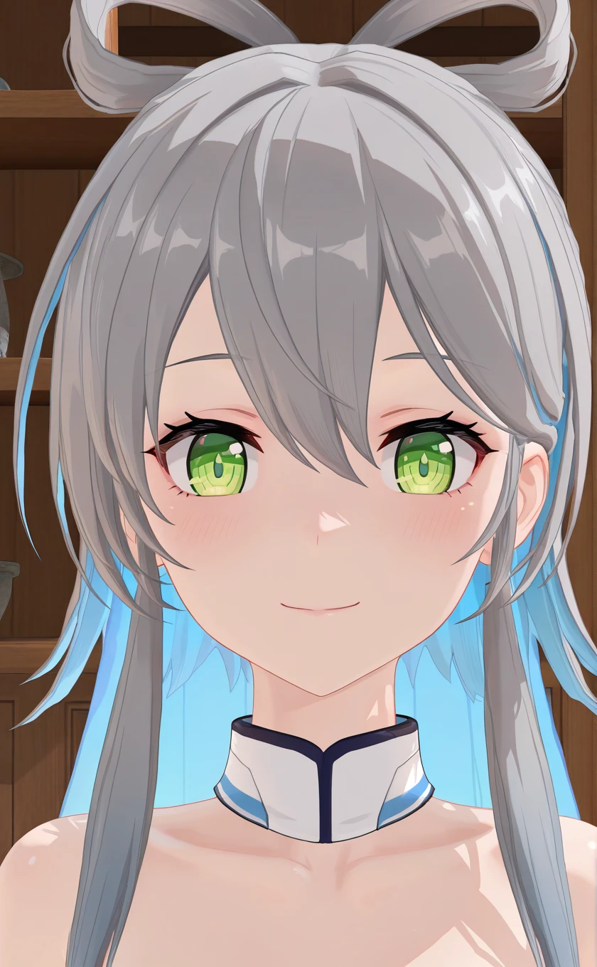 long hair,grey hair,multicolored hair,blue hair,hair rings,hair between eyes,sidelocks,green eyes