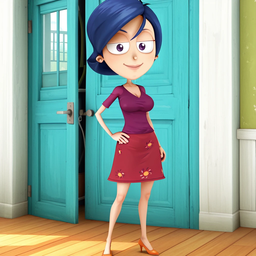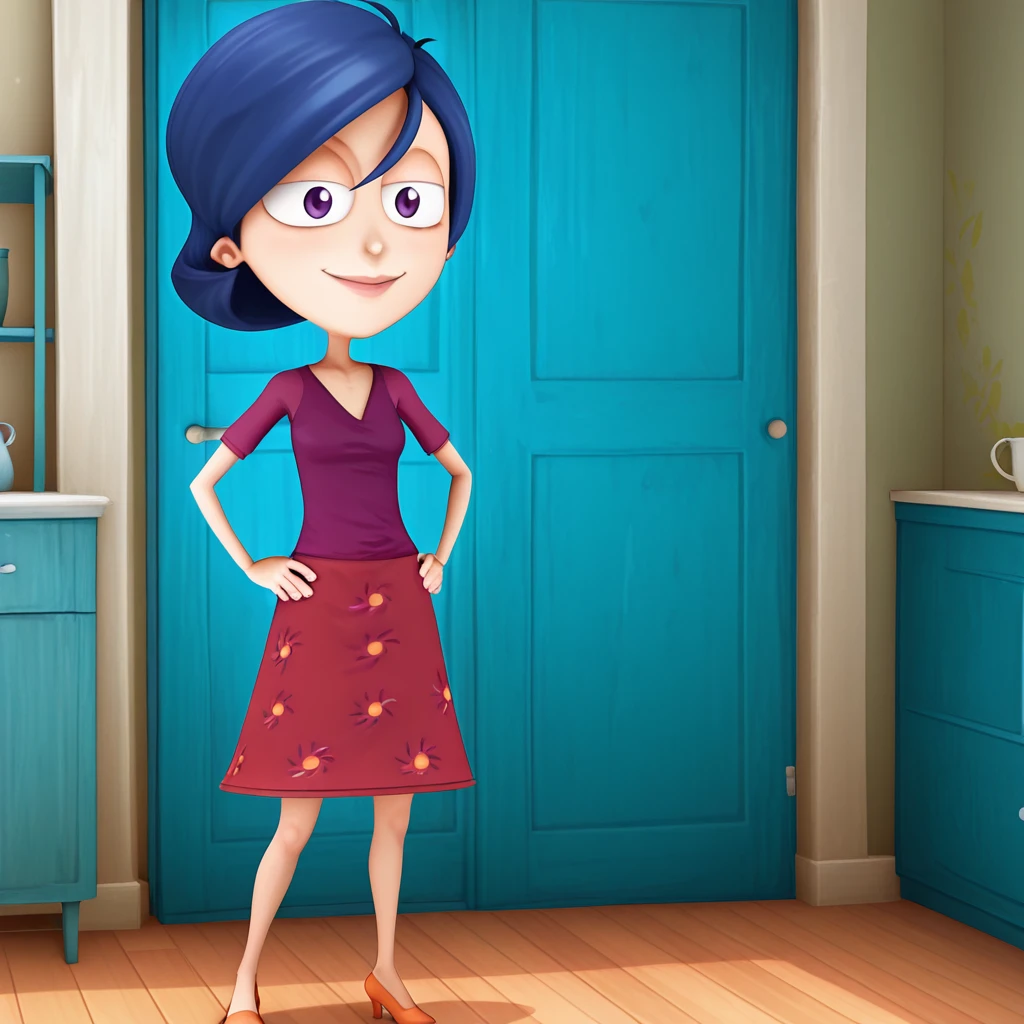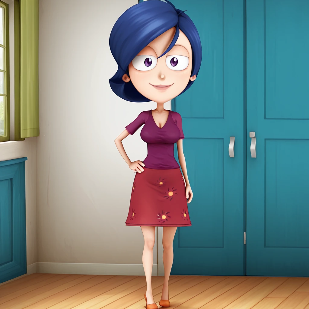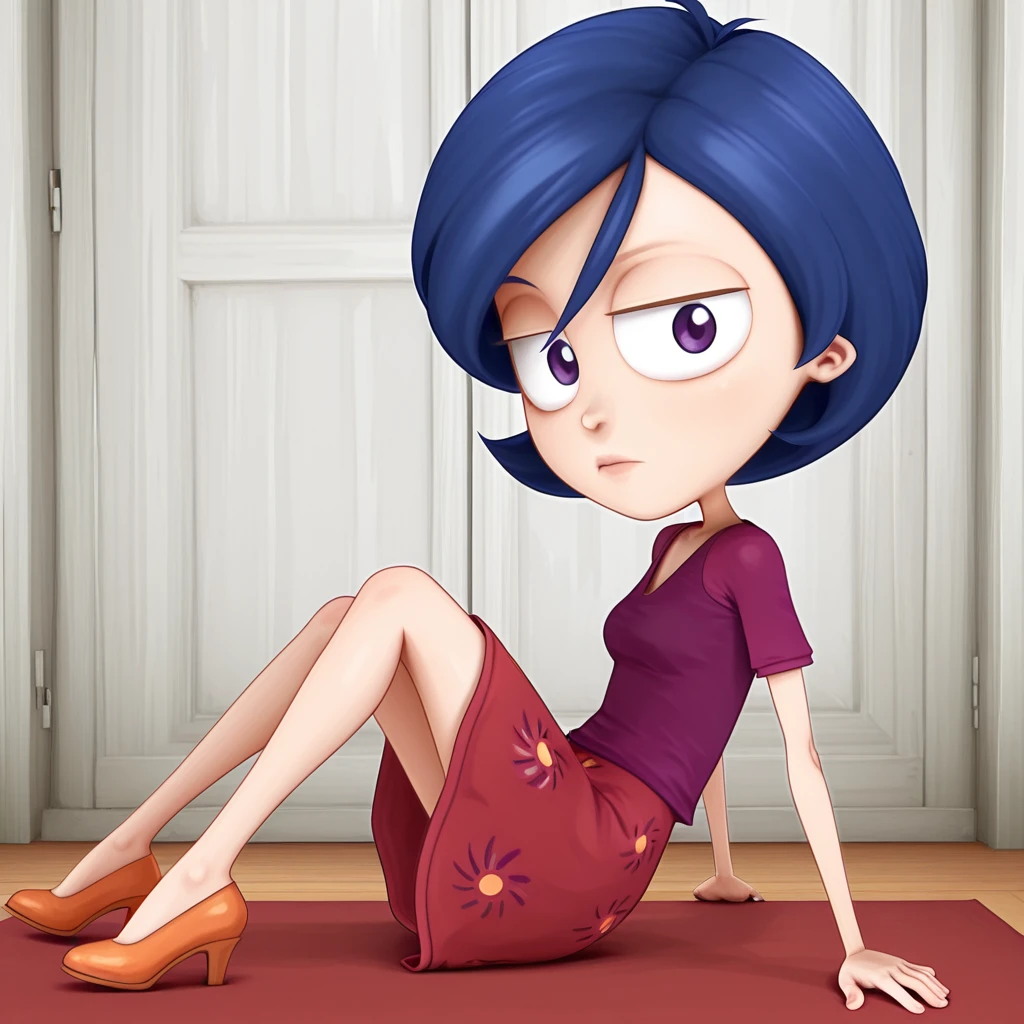 Summer_Lawrence, short hair, blue hair, dress, red dress, purple shirt, purple eyes, lips