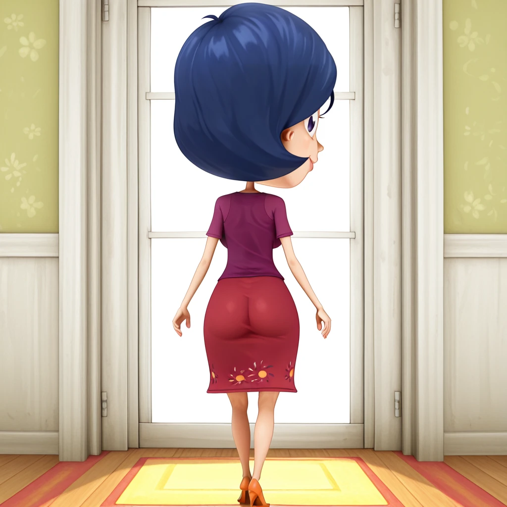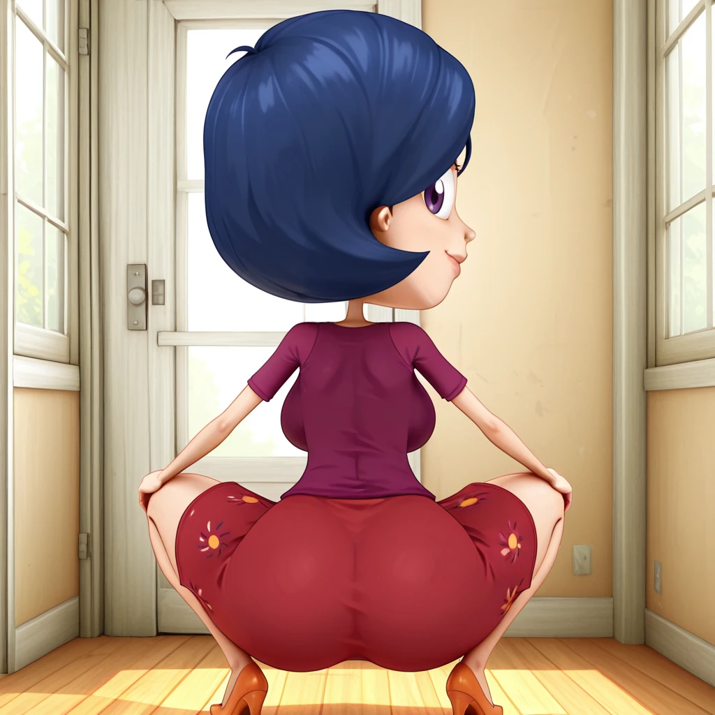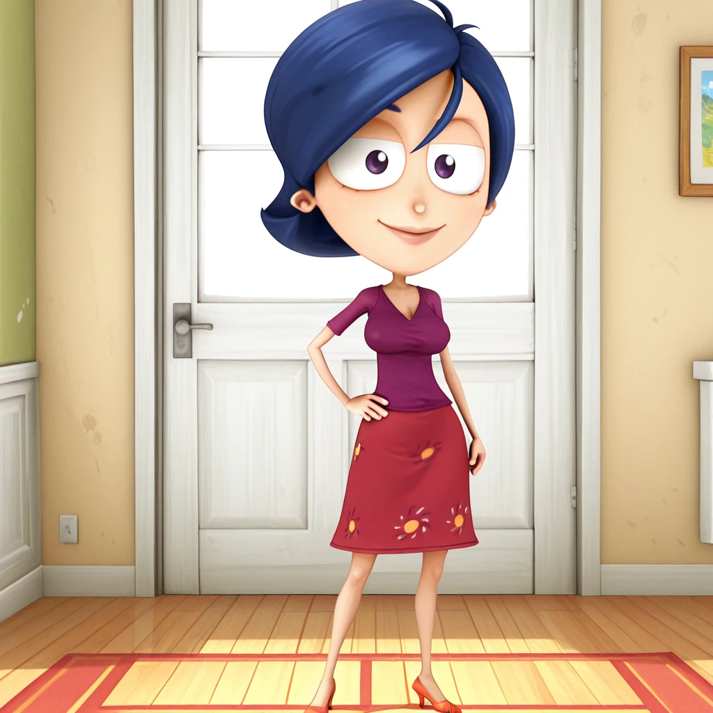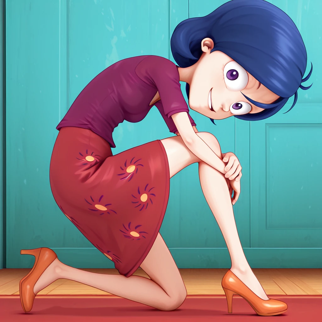 Summer_Lawrence, short hair, blue hair, dress, red dress, purple shirt, purple eyes, lips