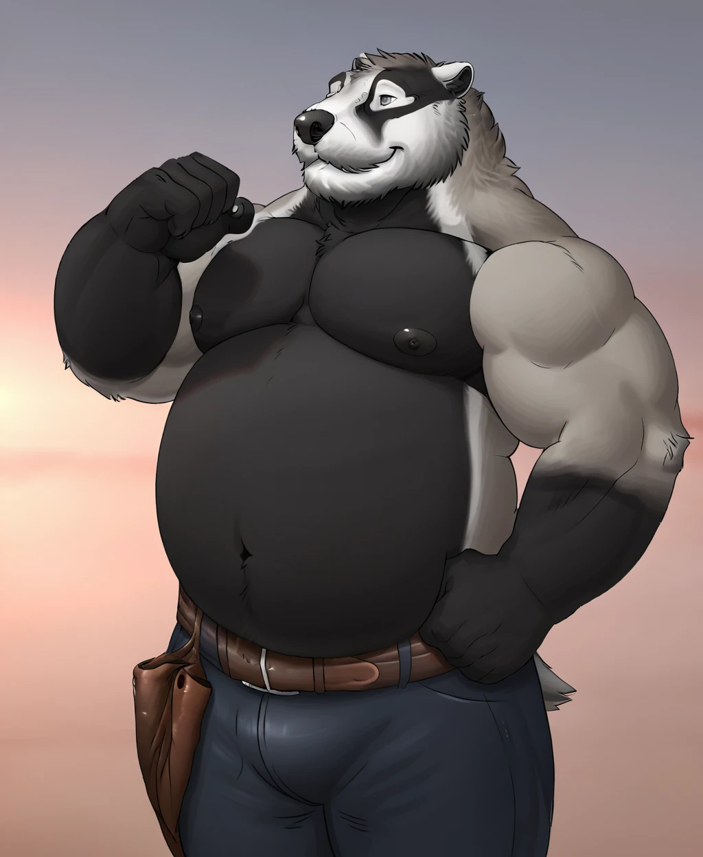 Recommended Prompts: "dark eyes, dark chest, dark belly, mature male, musclegut" (In positive) "eyebrows, grey eyebrows, black eyeshadow" (In negative)
