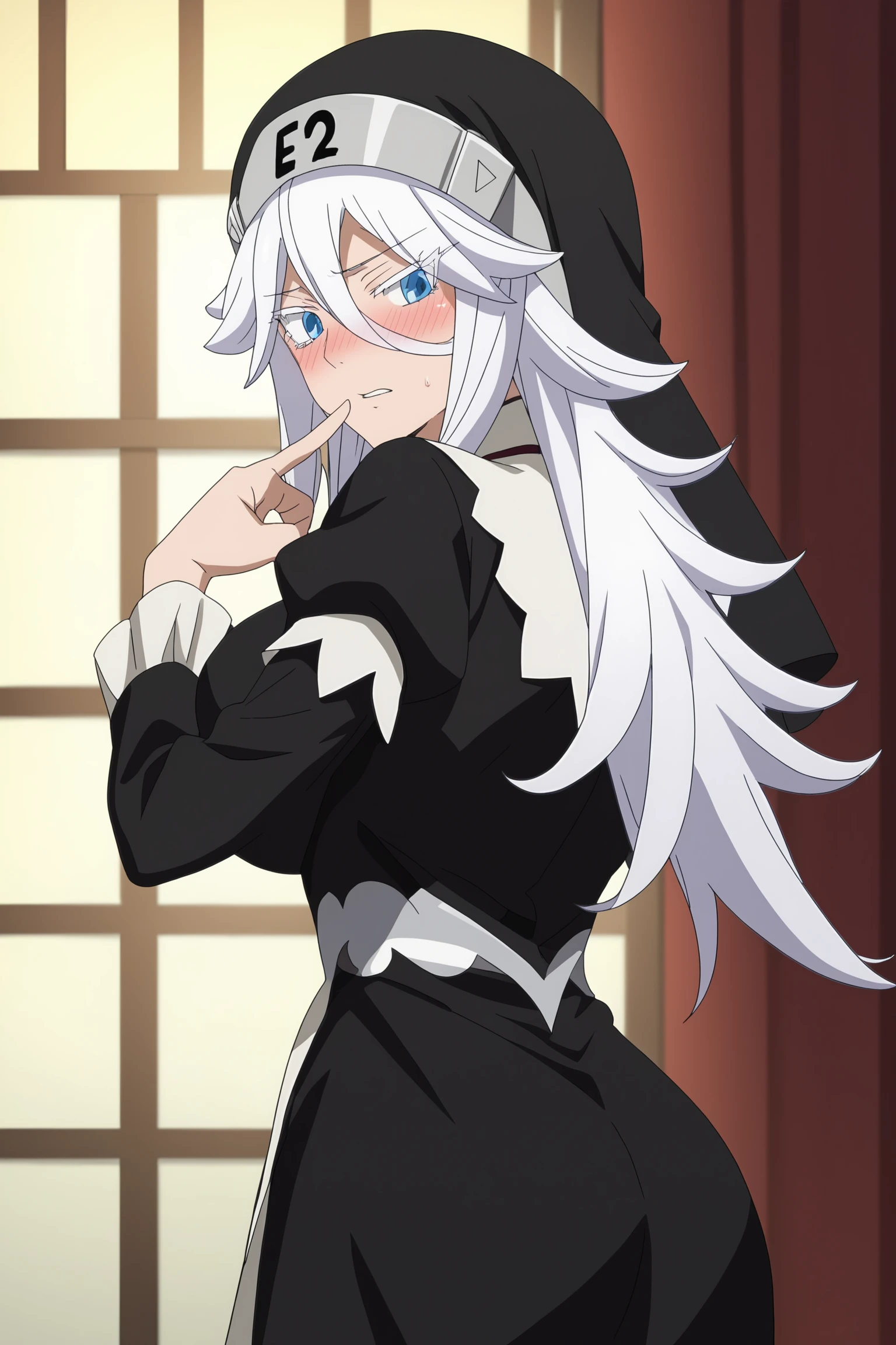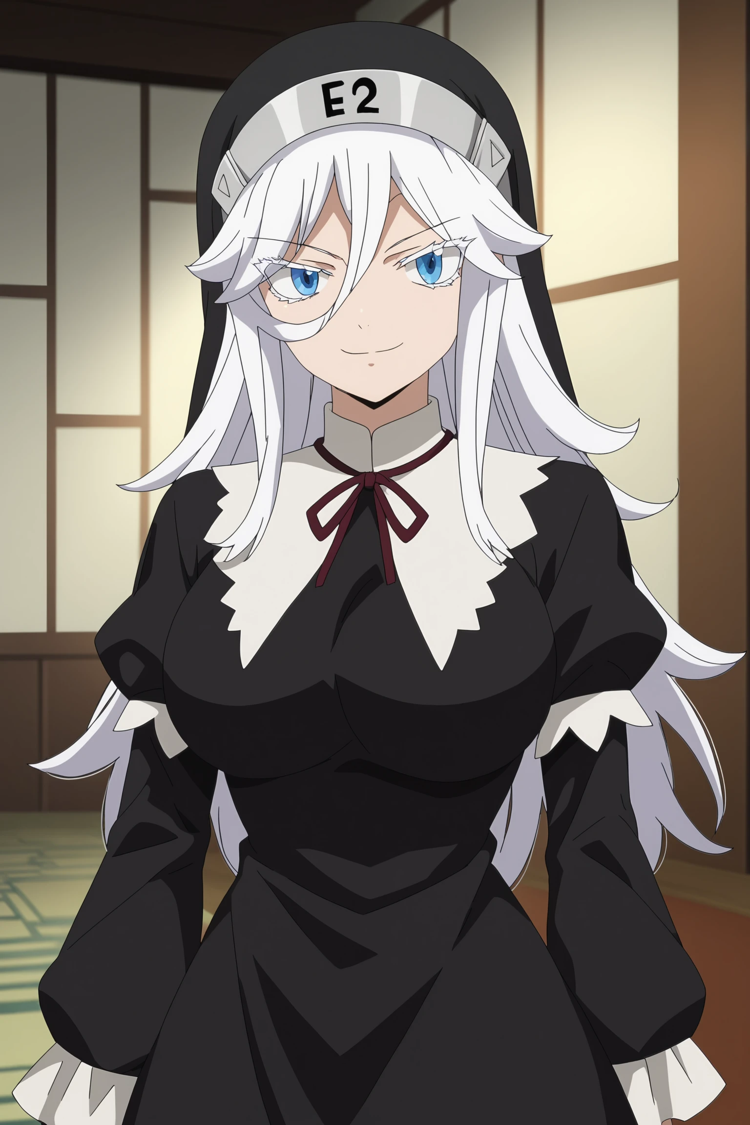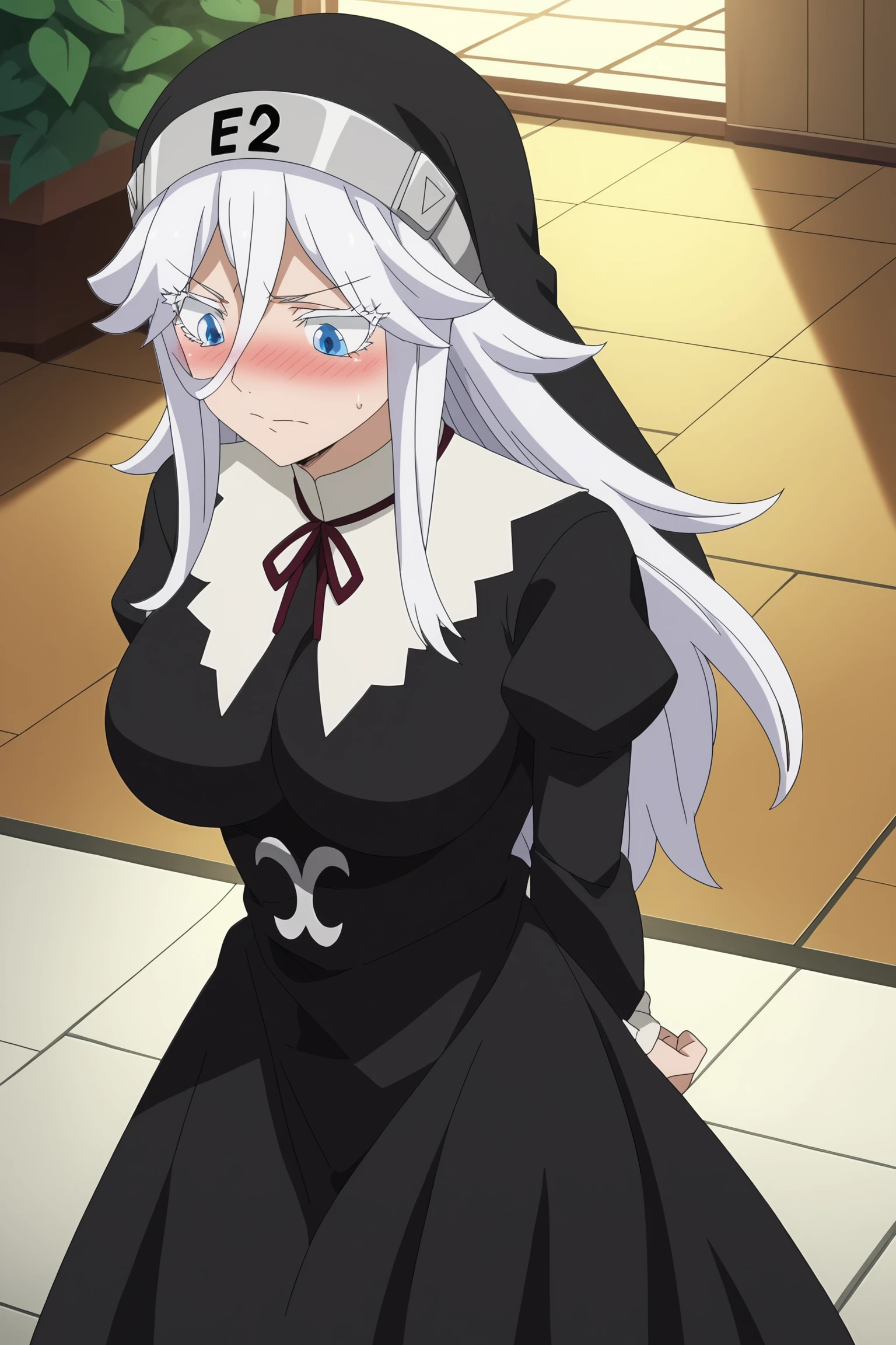 1girl, solo, long hair, breasts, blue eyes, hair between eyes, white hair, colored eyelashes, sister_ivry