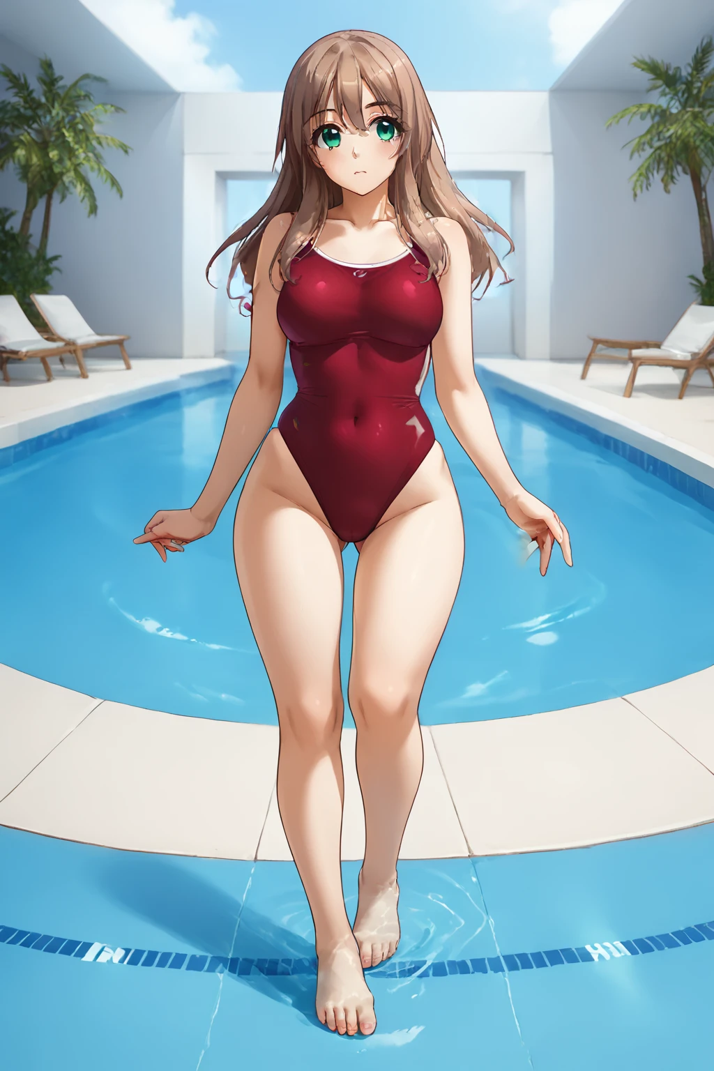 NomiyaNanako, 1girl, long hair, green eyes, brown hair,narrow waist,