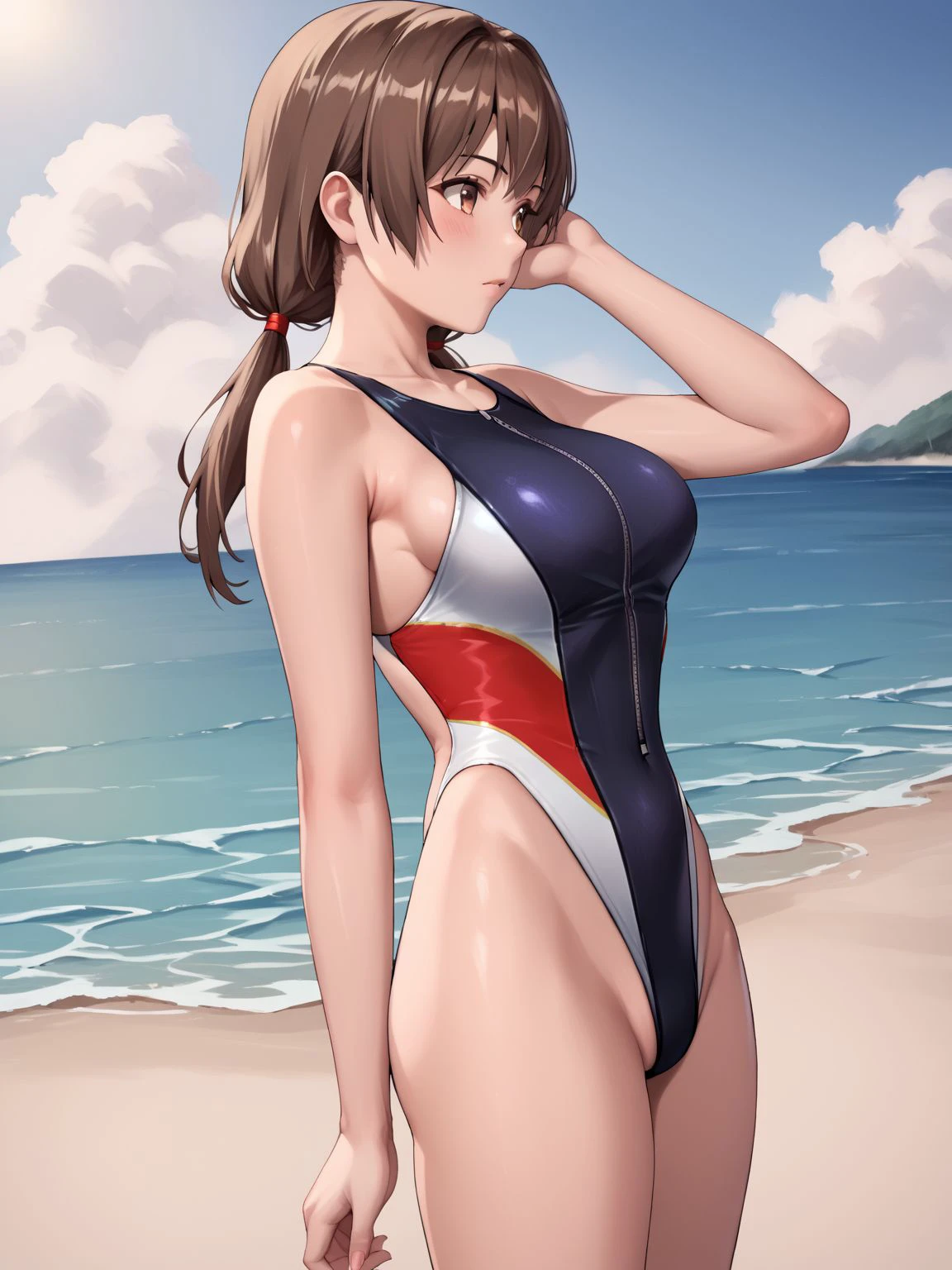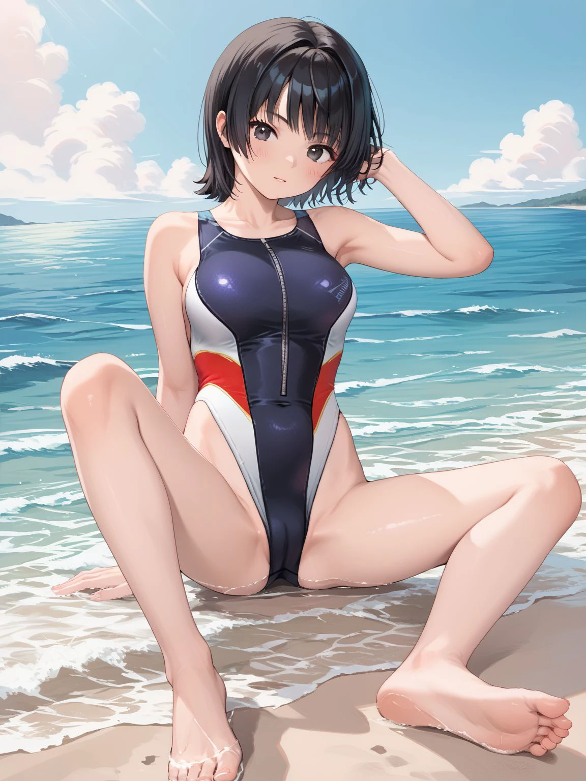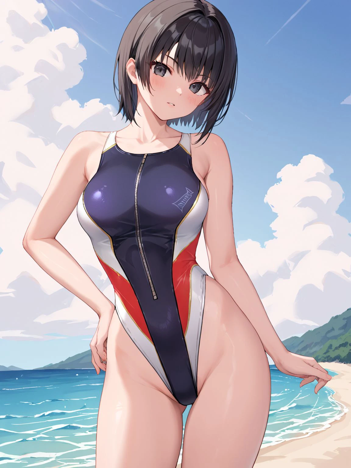 highleg,highleg swimsuit,competition swimsuit,red one-piece swimsuit,black one-piece swimsuit,multicolored swimsuit,swimsuit,zipper