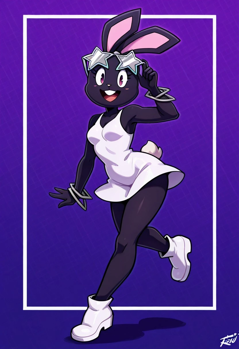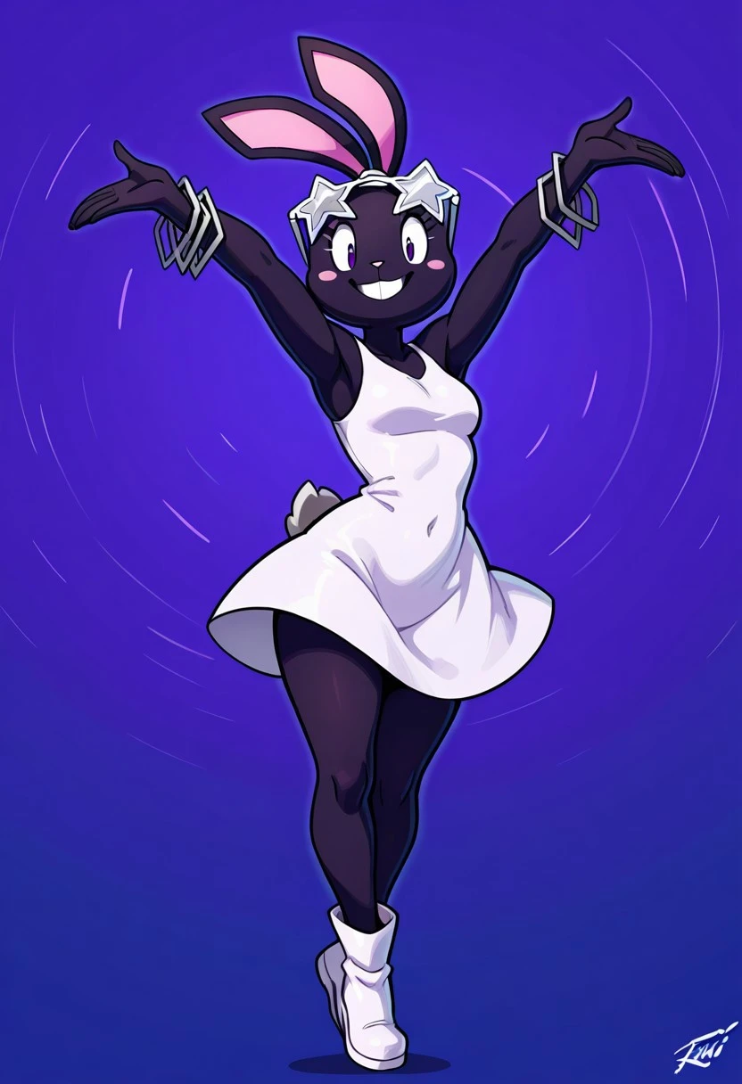 furry female, black fur, blush stickers, animal nose, rabbit ears, rabbit tail