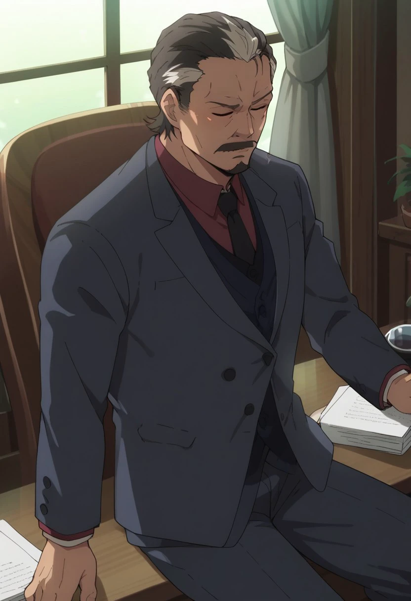 Generate the main antagonist of Buddy Daddies, boss of a hitman organization, and a cold blooded father
