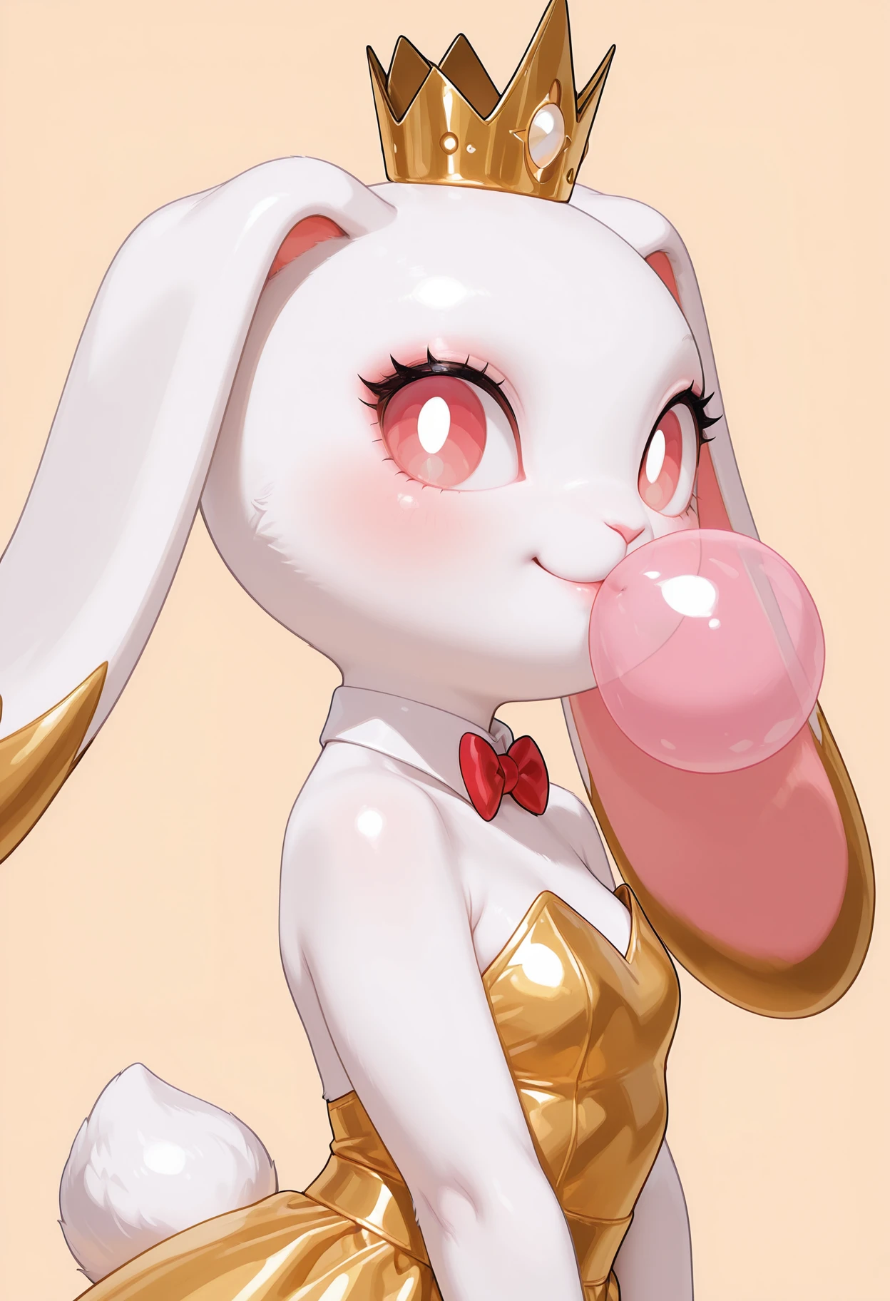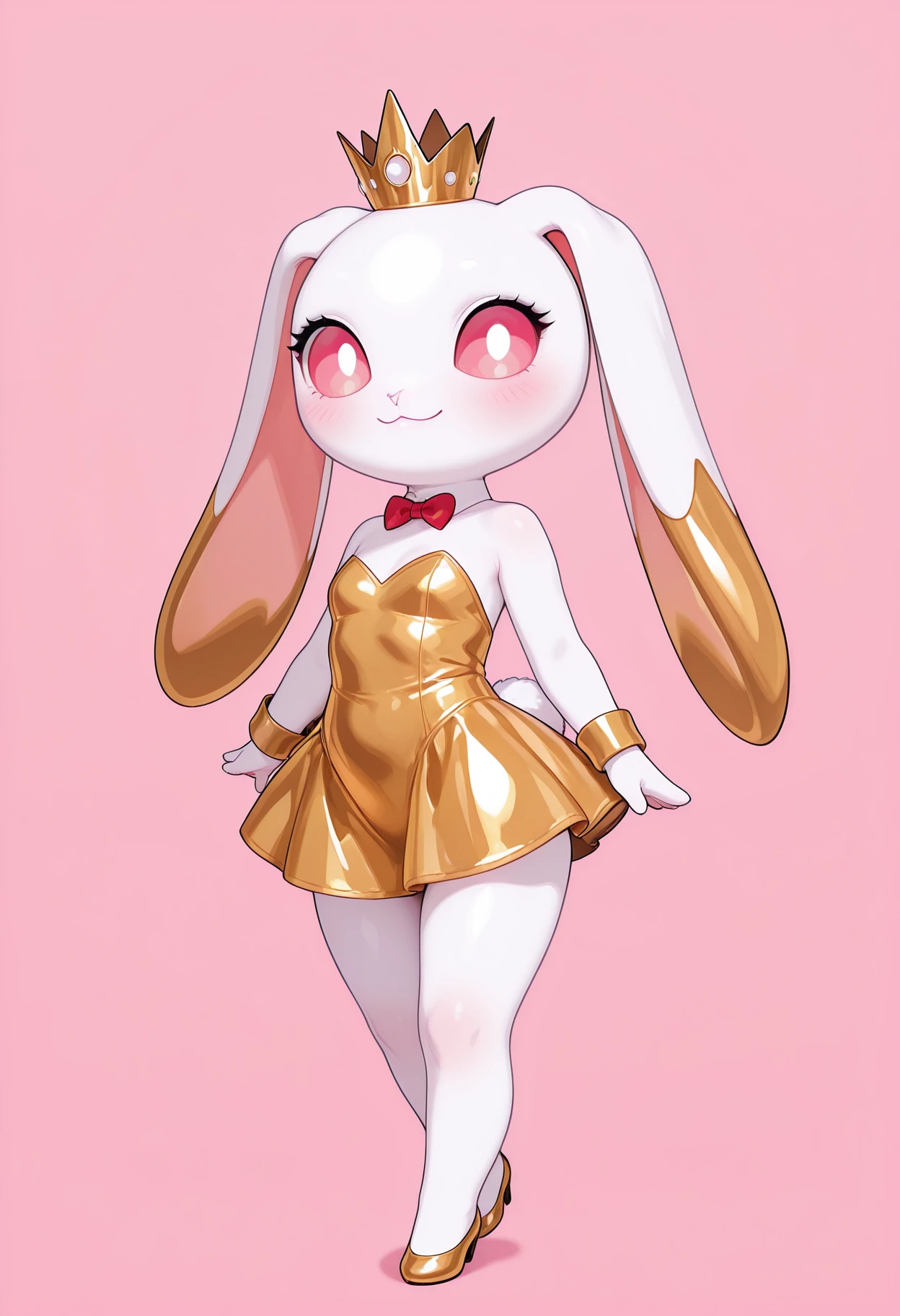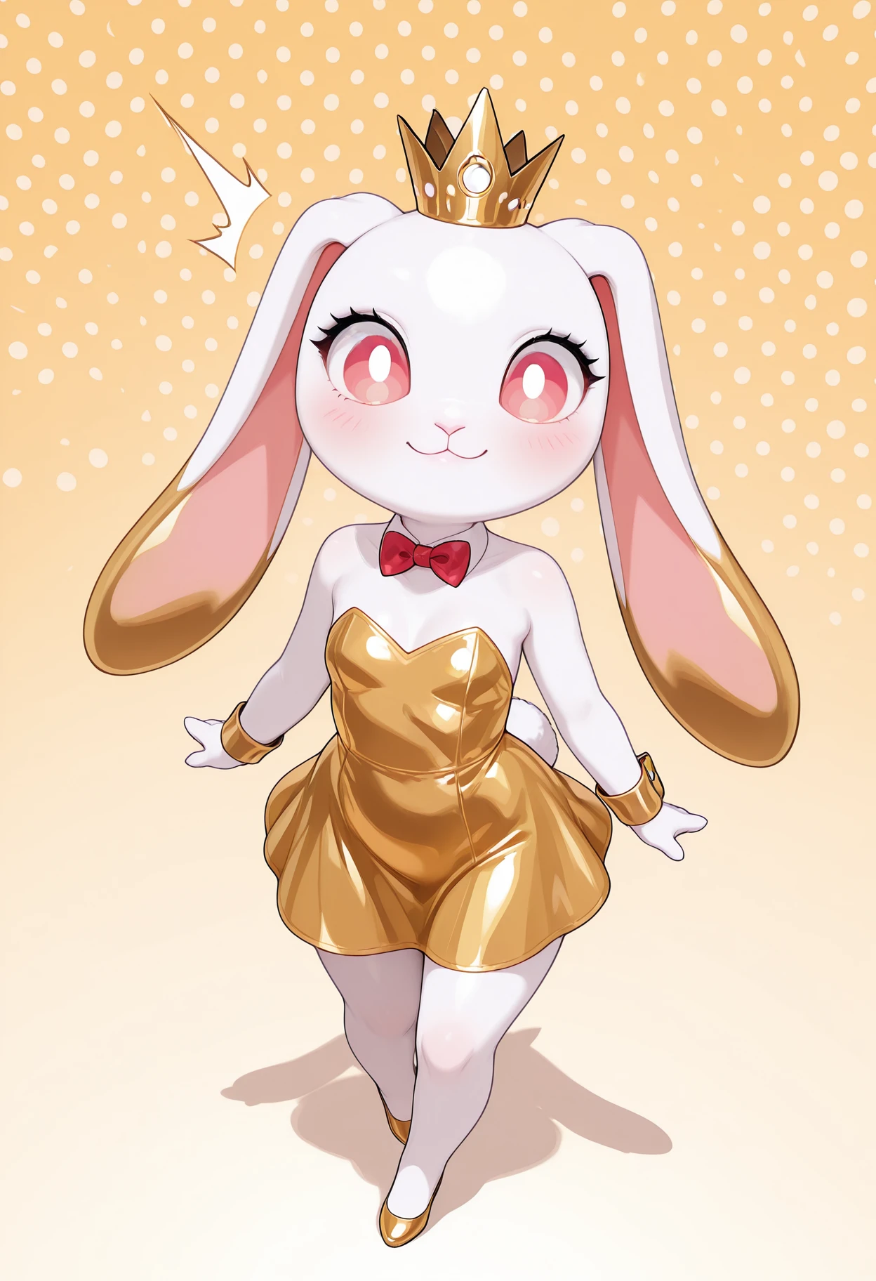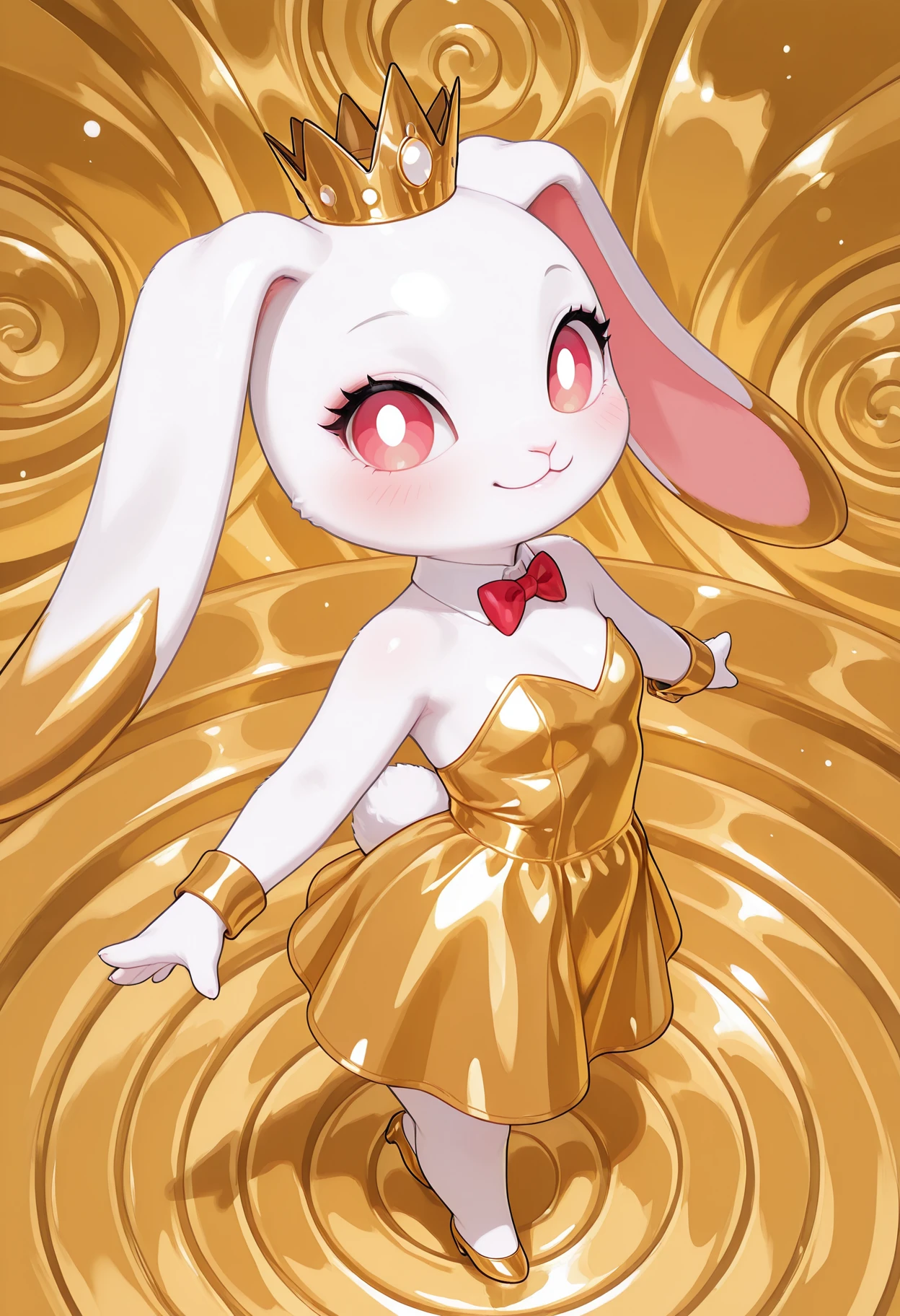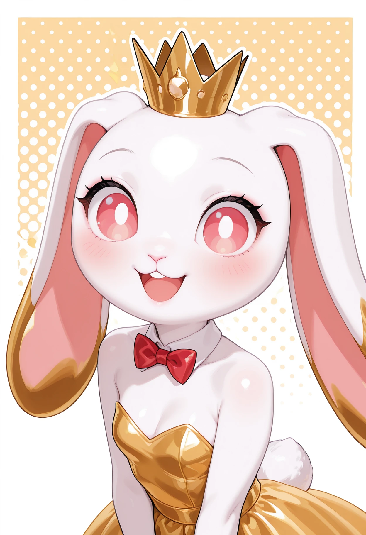 gold_-chan, rabbit ears, 1girl, rabbit, no humans, animal ears, crown, dress, yellow dress, white collar, furry female, rabbit tail,