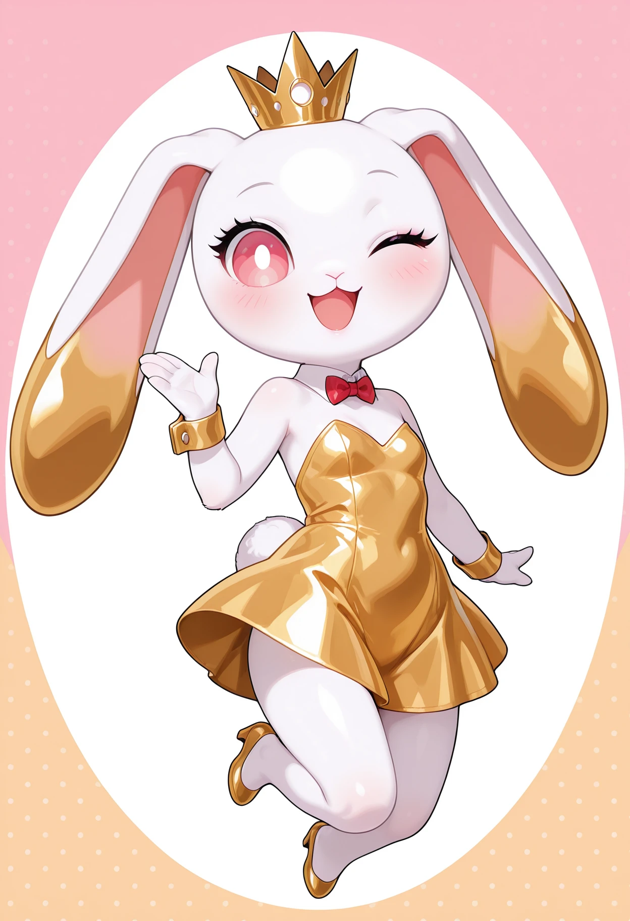 Anya Goldcrown's avatar, which she uses to stream her videos. I don't create furry characters, gold_Bunny is exclusively Anya's virtual avatar and mascot. Due to the Civil system, which considers the bunny suite to be a very revealing outfit at a mascot, I decided to change the outfit to a dress.