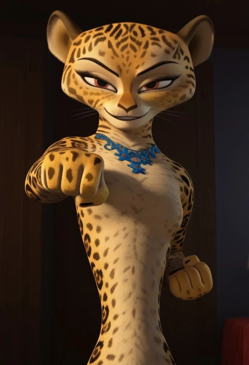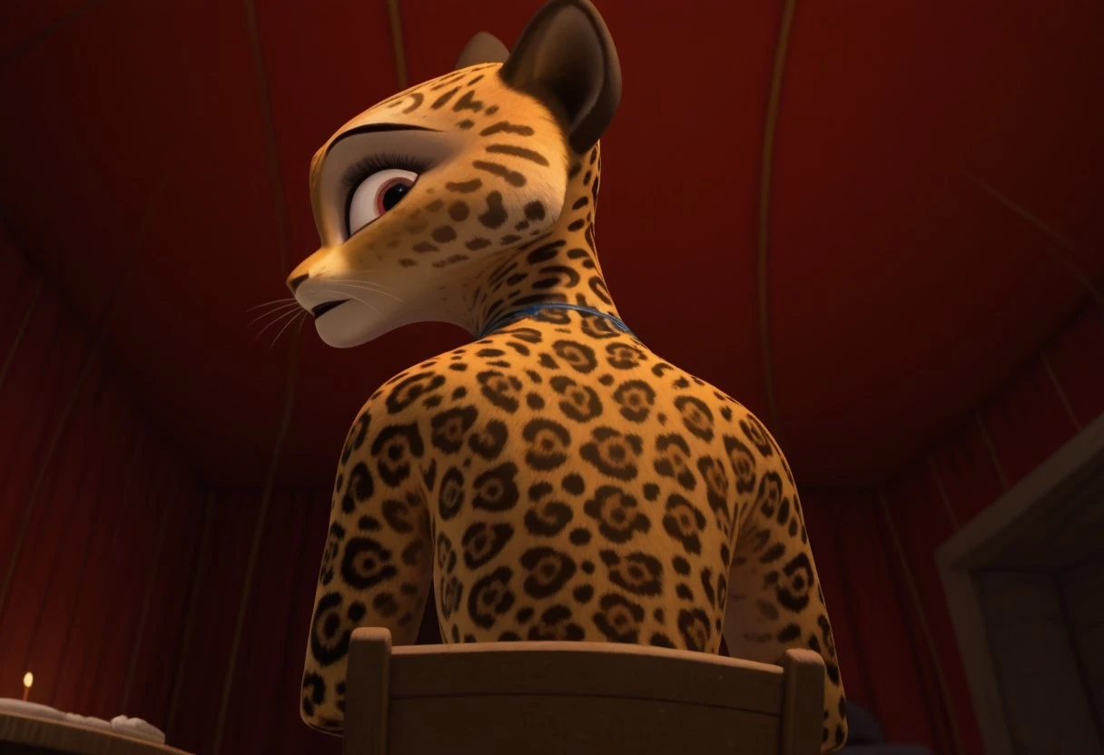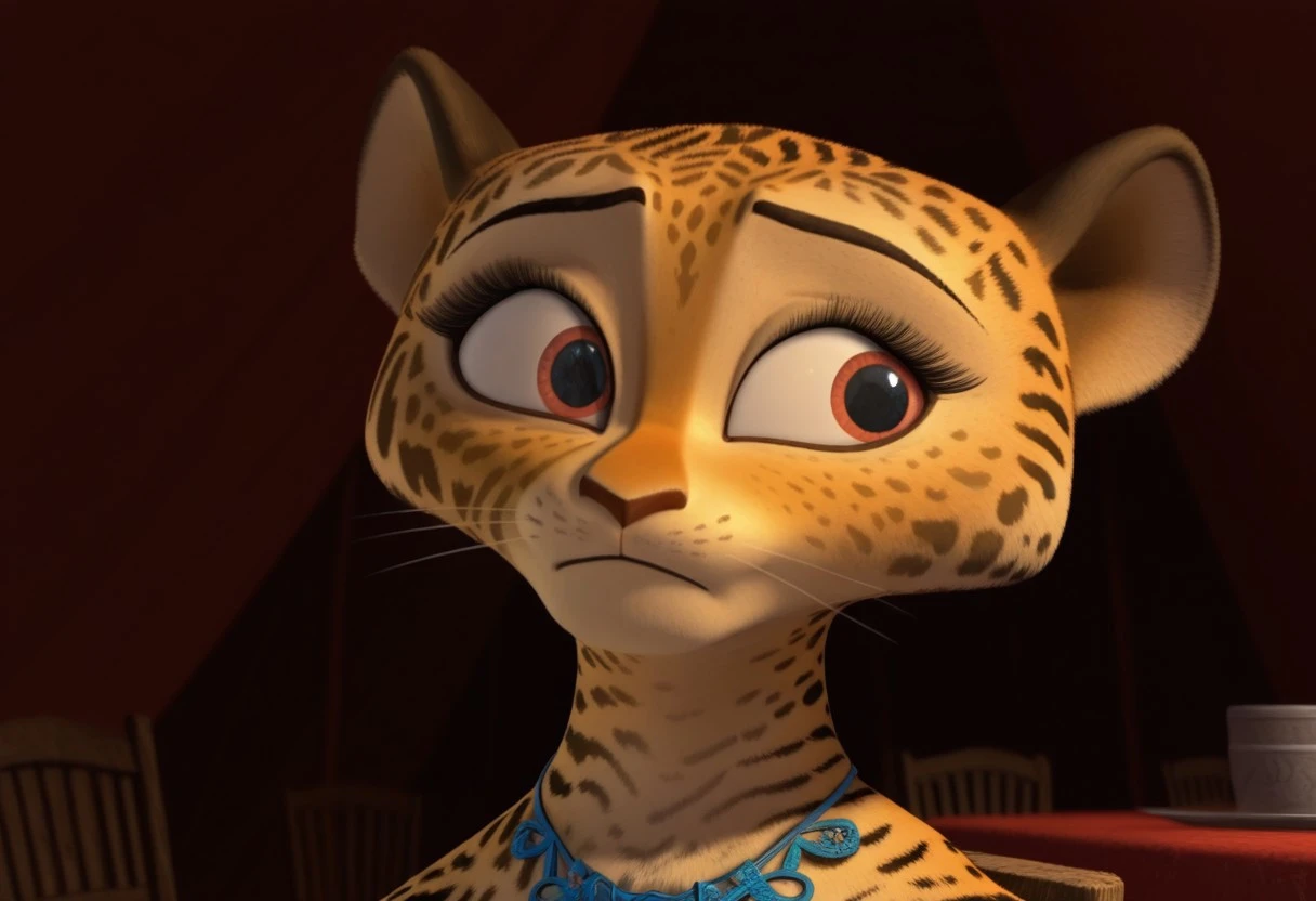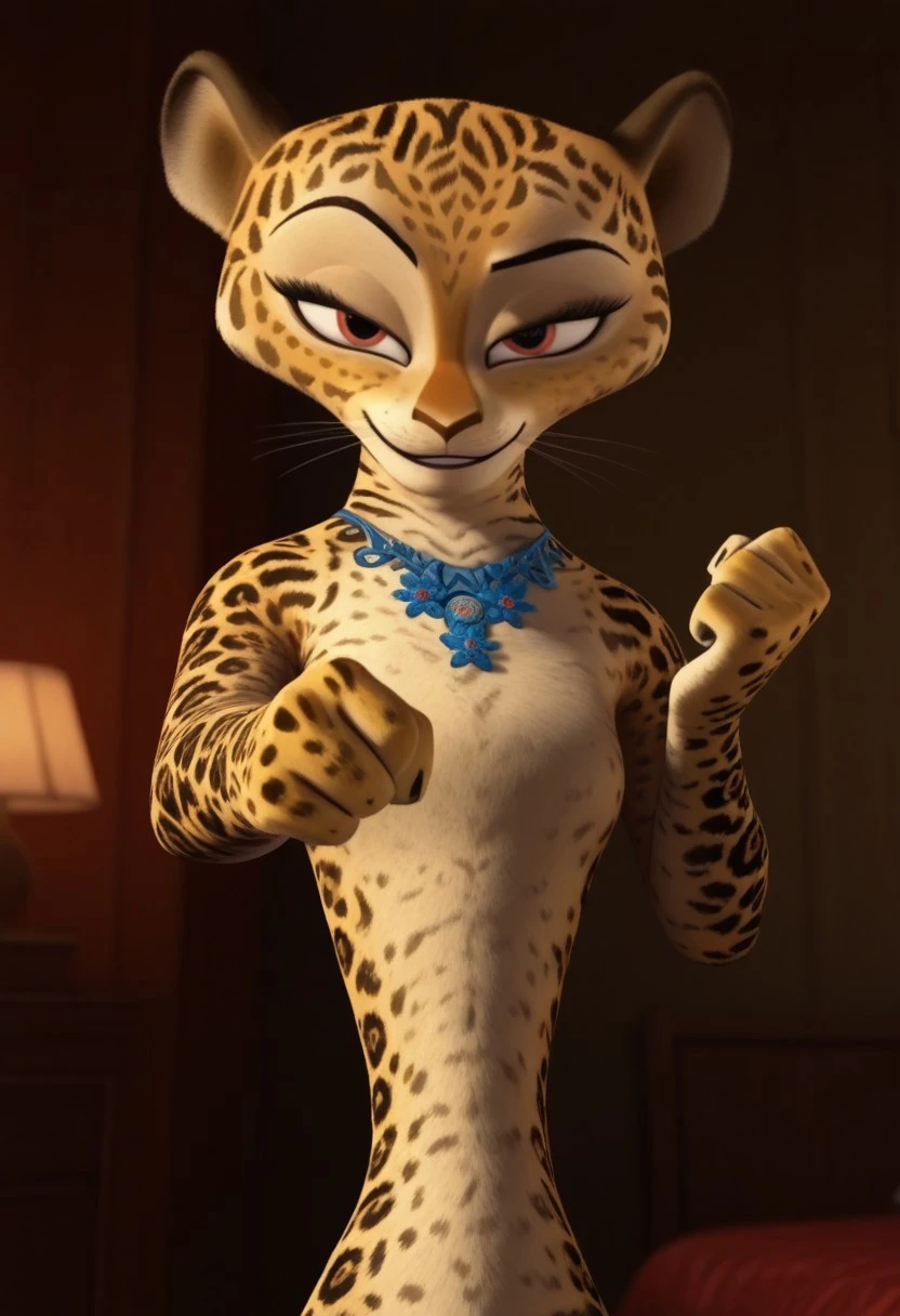 giam, jaguar, cheetah print, gold fur, cream fur, red eyes, black spots, pink spots, pink eyeshadow, skinny, furry, anthro, 3D, cgi, cat nose, whiskers, black eyebrows, furry girl, female, furry female, blue necklace, 1girl,
