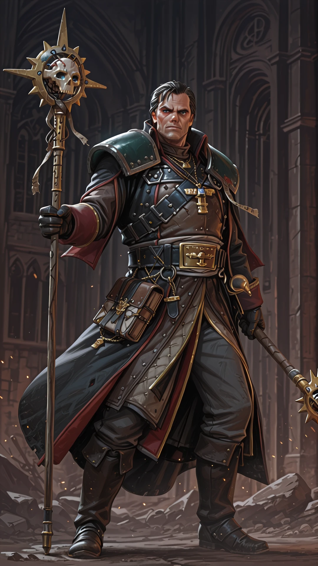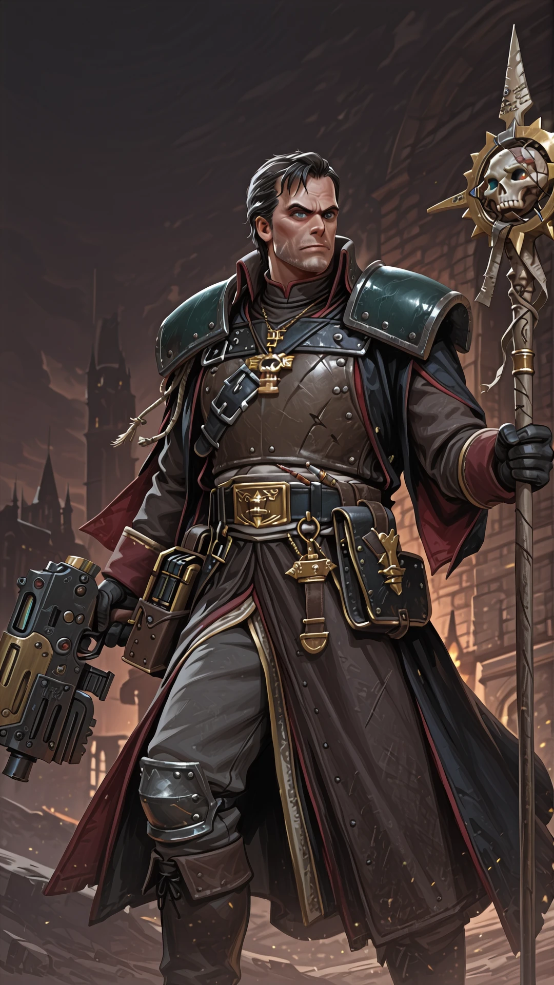 1boy, armor, necklace, staff,