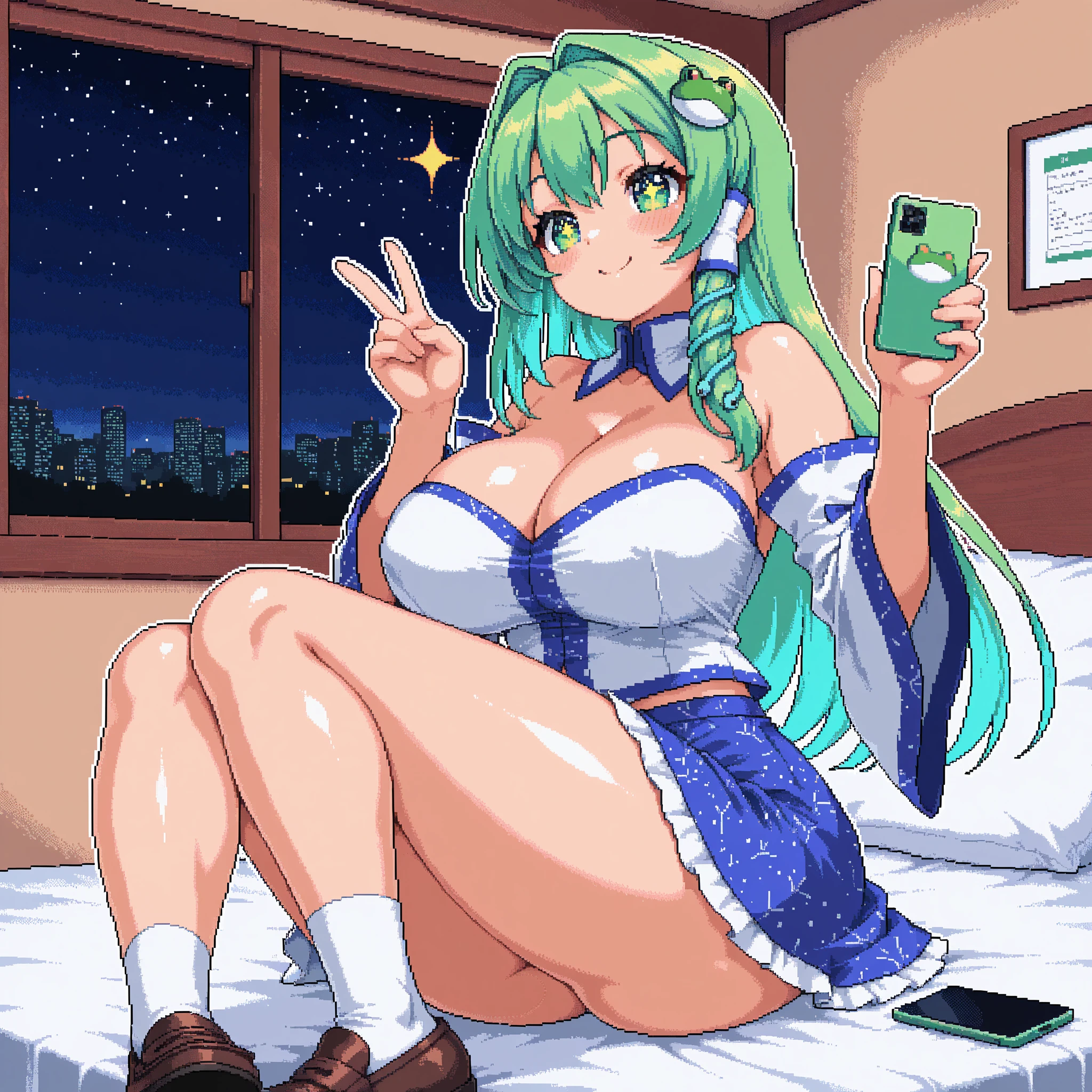 Sana from the video game Pixel Call Girls (or Sanae Kochiya from the video game series Touhou Project considering how similar their appearances are)