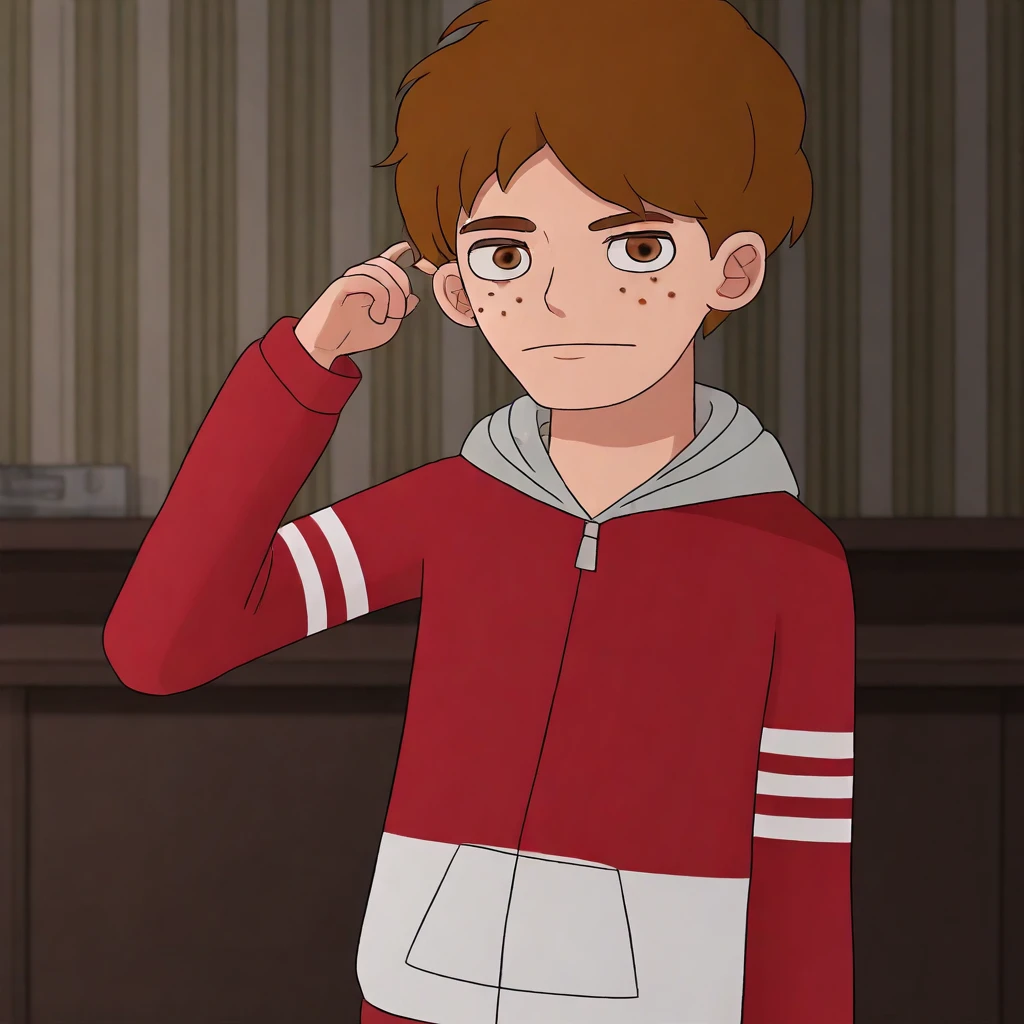B3n, male focus, 1boy, brown hair, solo, brown eyes, freckles,