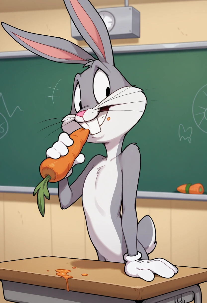 (bugs bunny), black eyes, rabbit, grey fur, white fur, two tone fur, white bunny tail, rabbit ears,