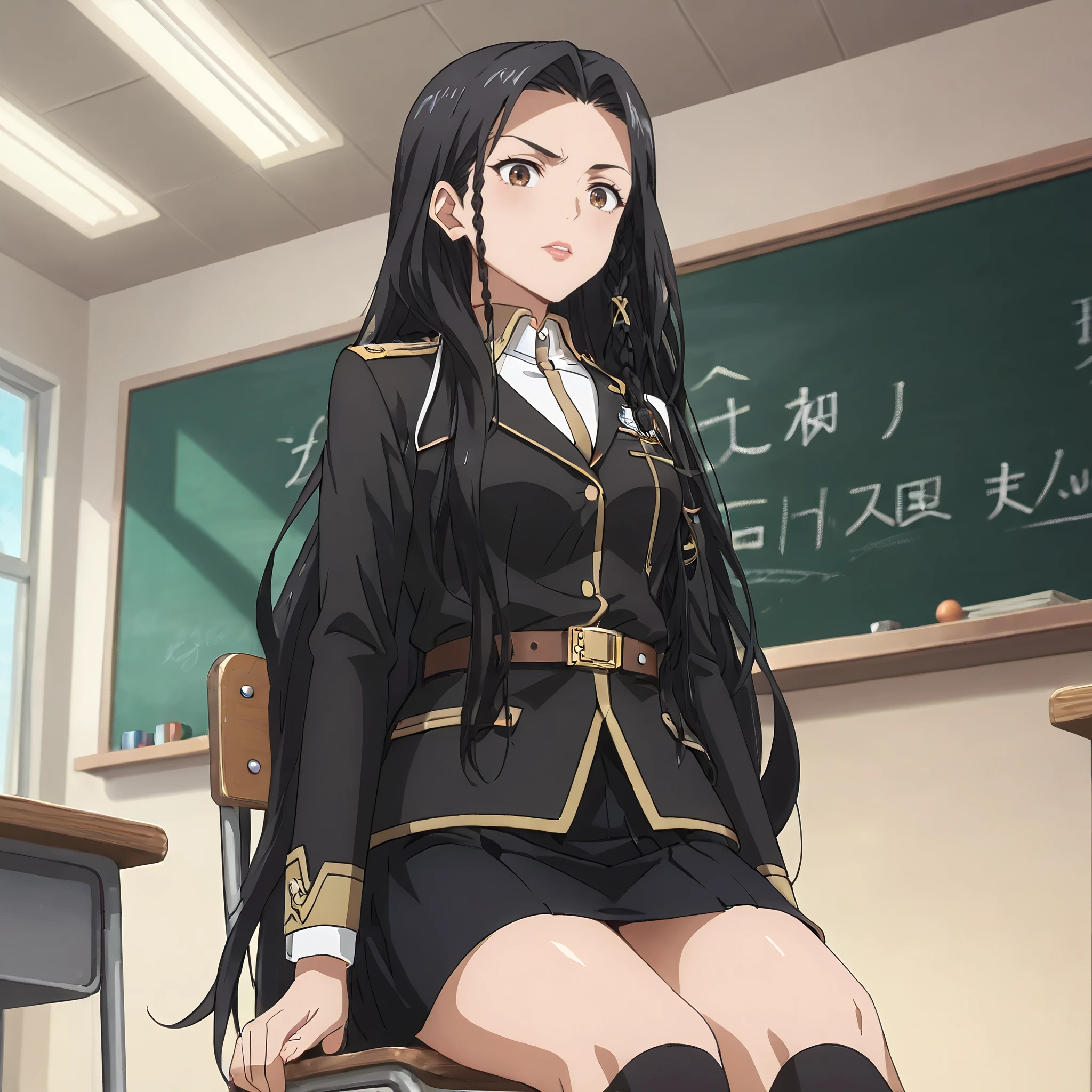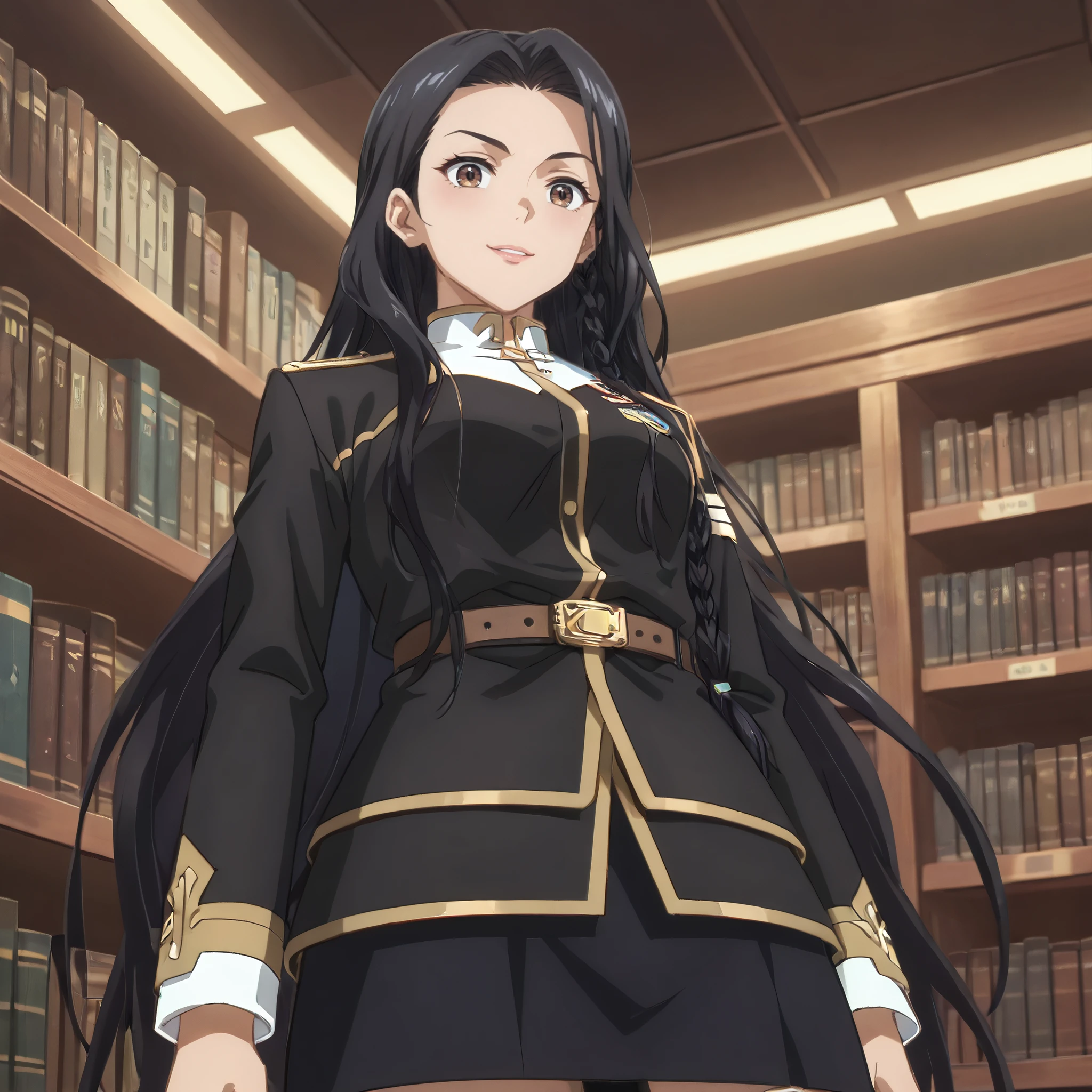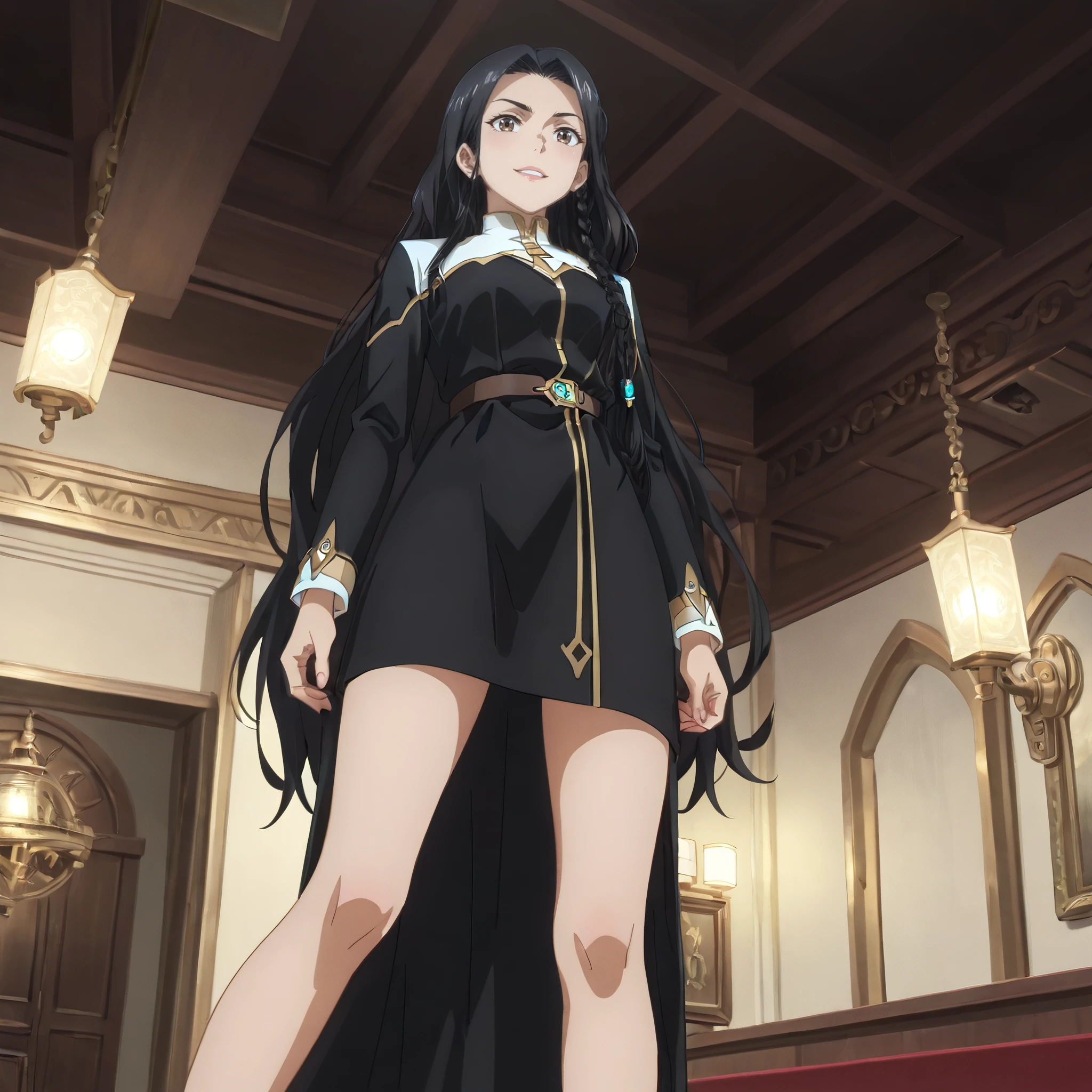 DRSelma, brown eyes, black hair, very long hair, side braid, single braid,