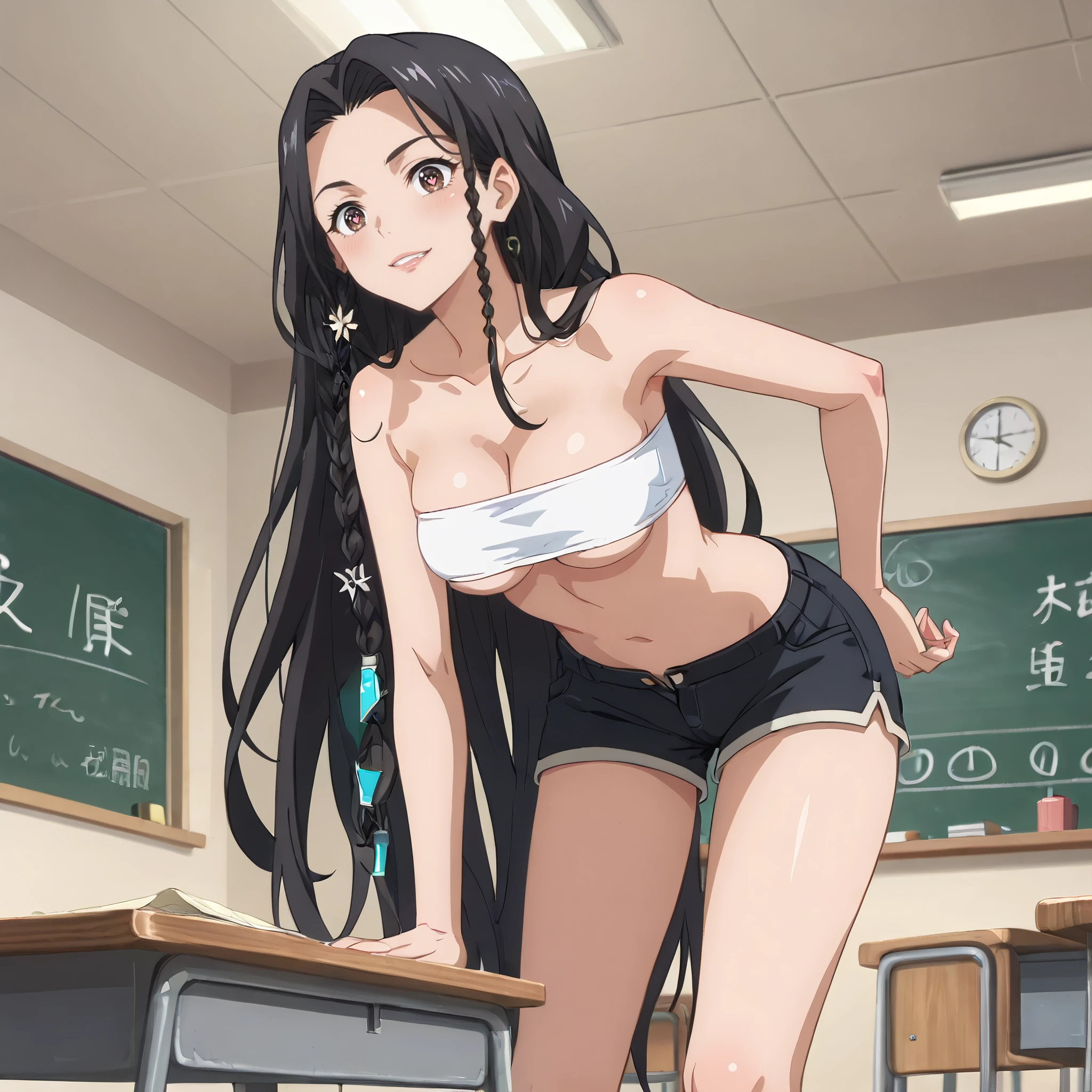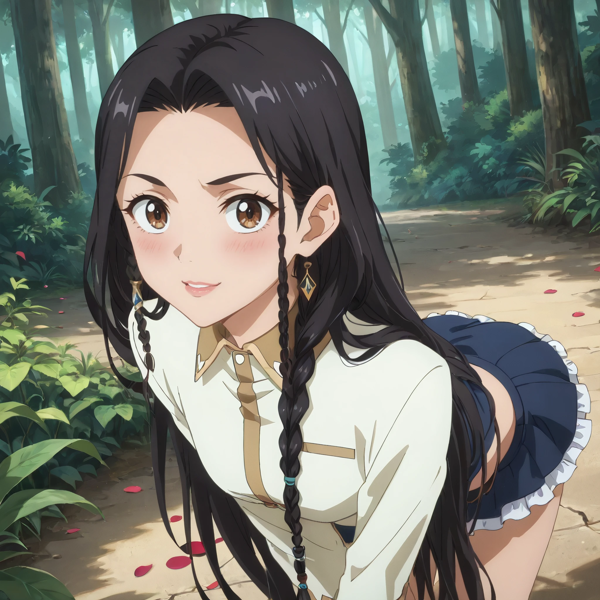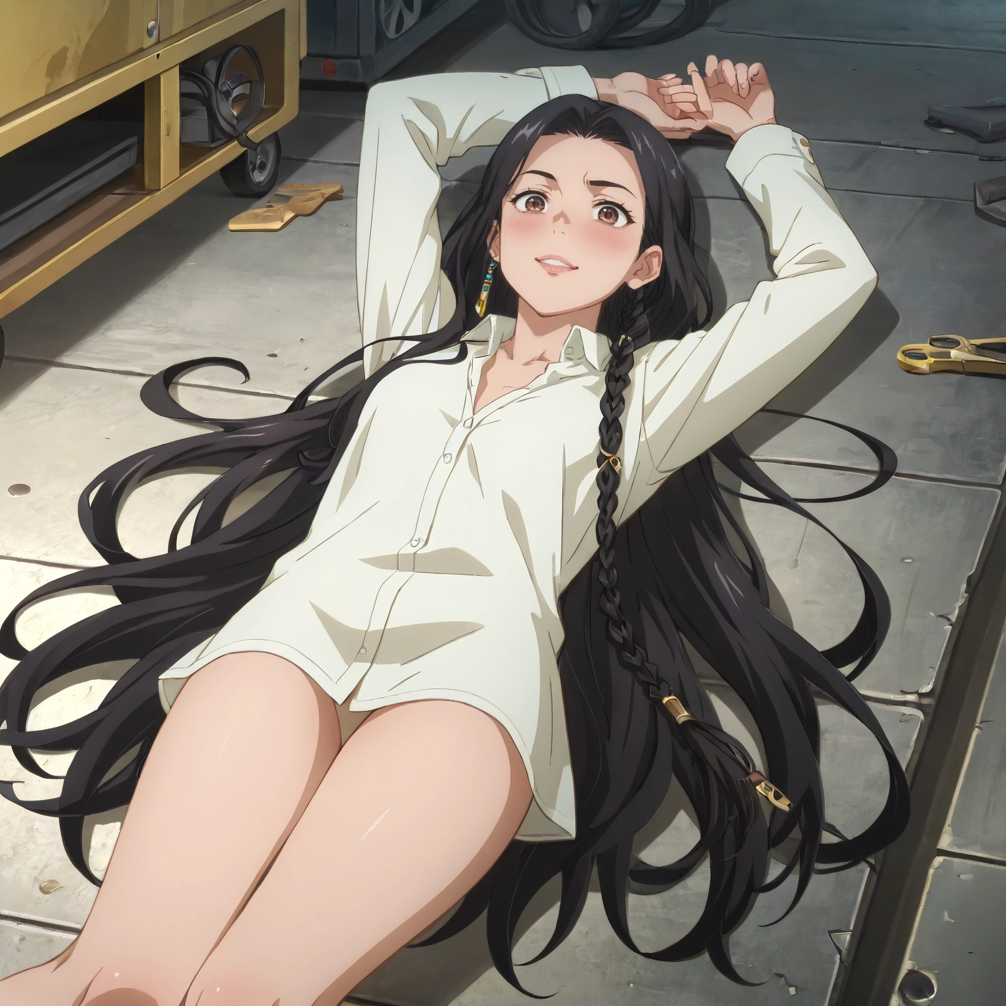 DRSelma, brown eyes, black hair, very long hair, side braid, single braid,