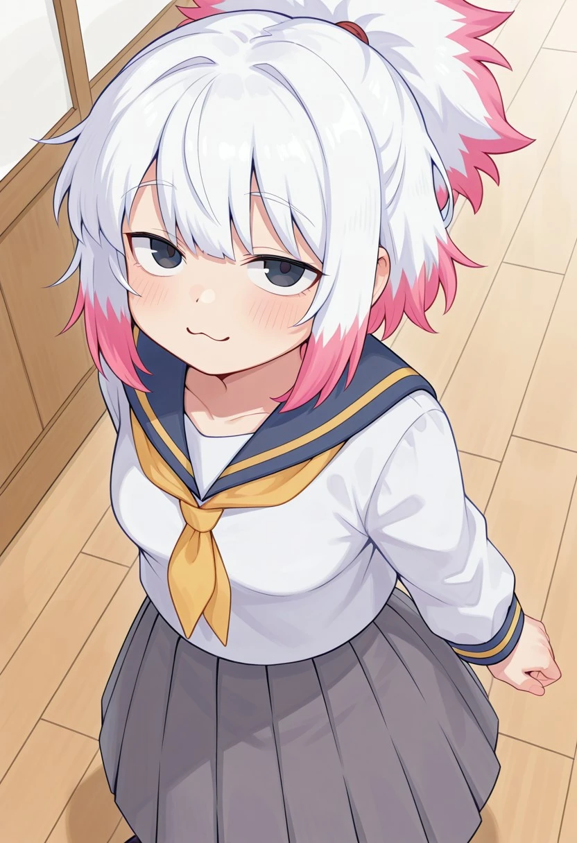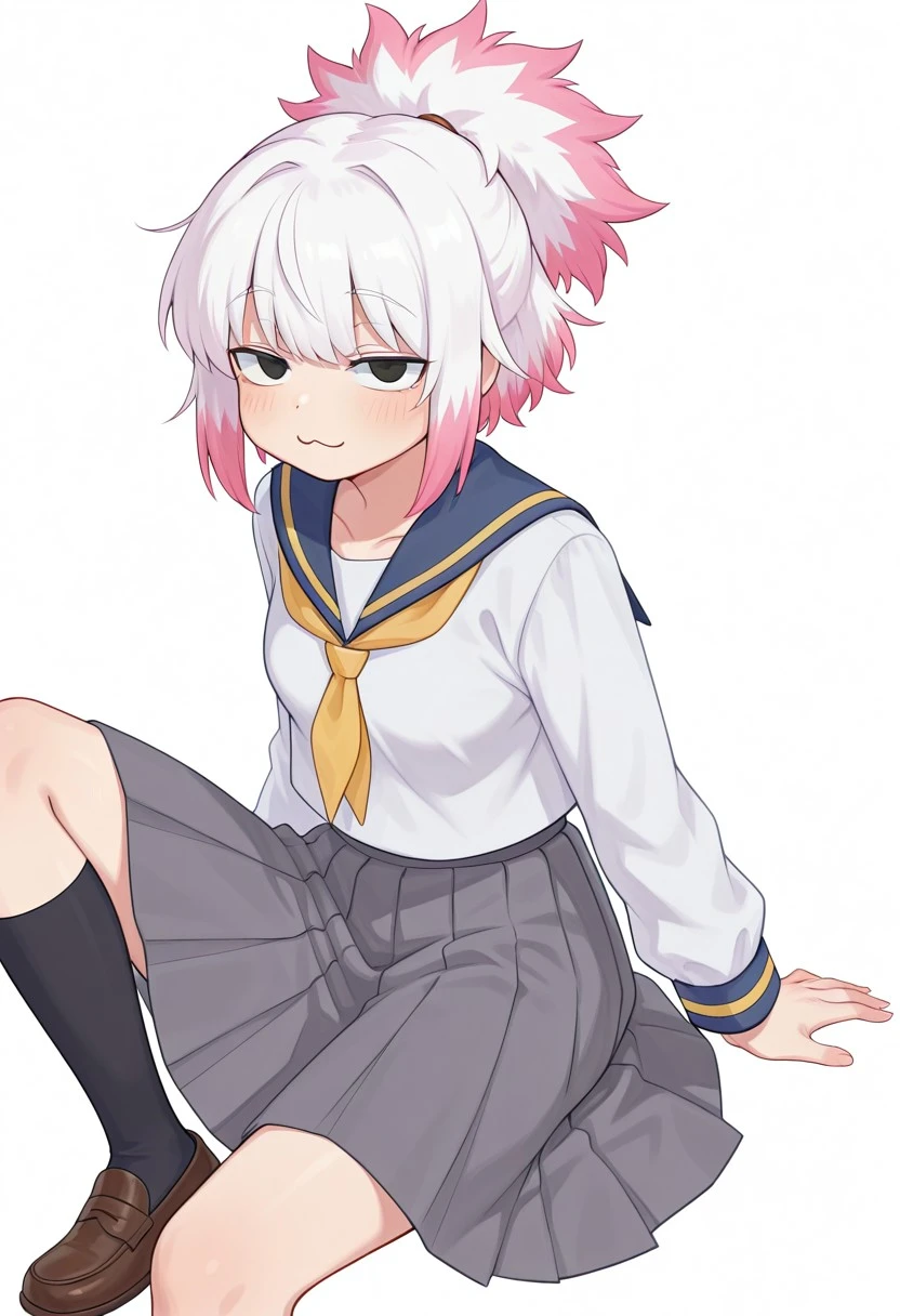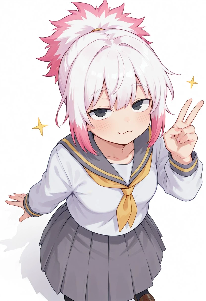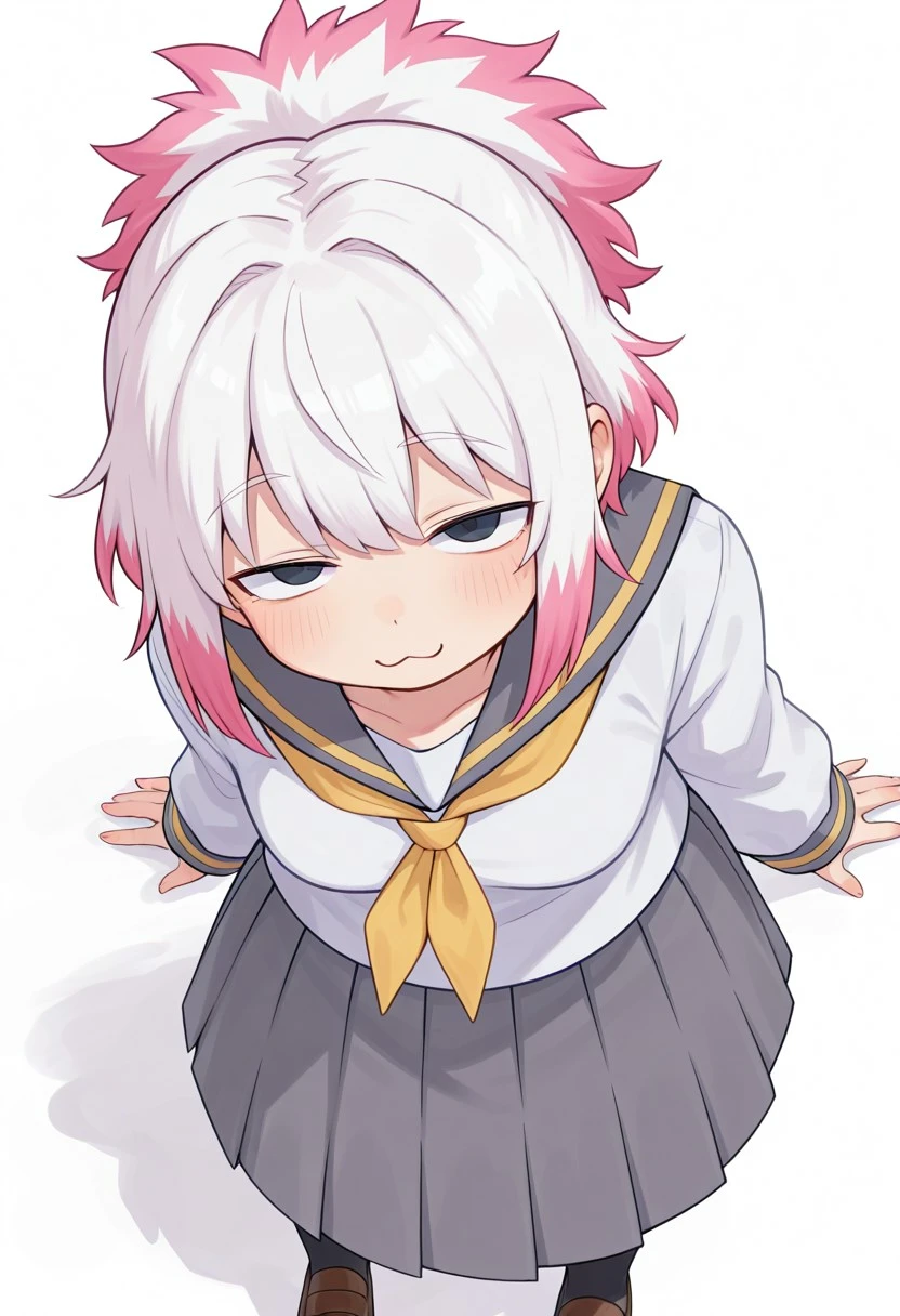 <lora:YozoraOogumaKDM-V1>,YozoraOogumaKDM, White hair , two-tone hair, pink tips,pink hair , black eyes, loose hair , medium breasts,:3,