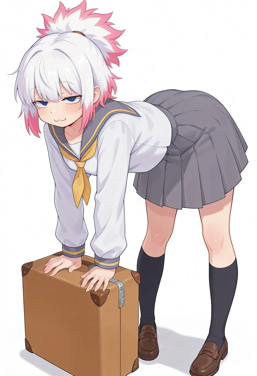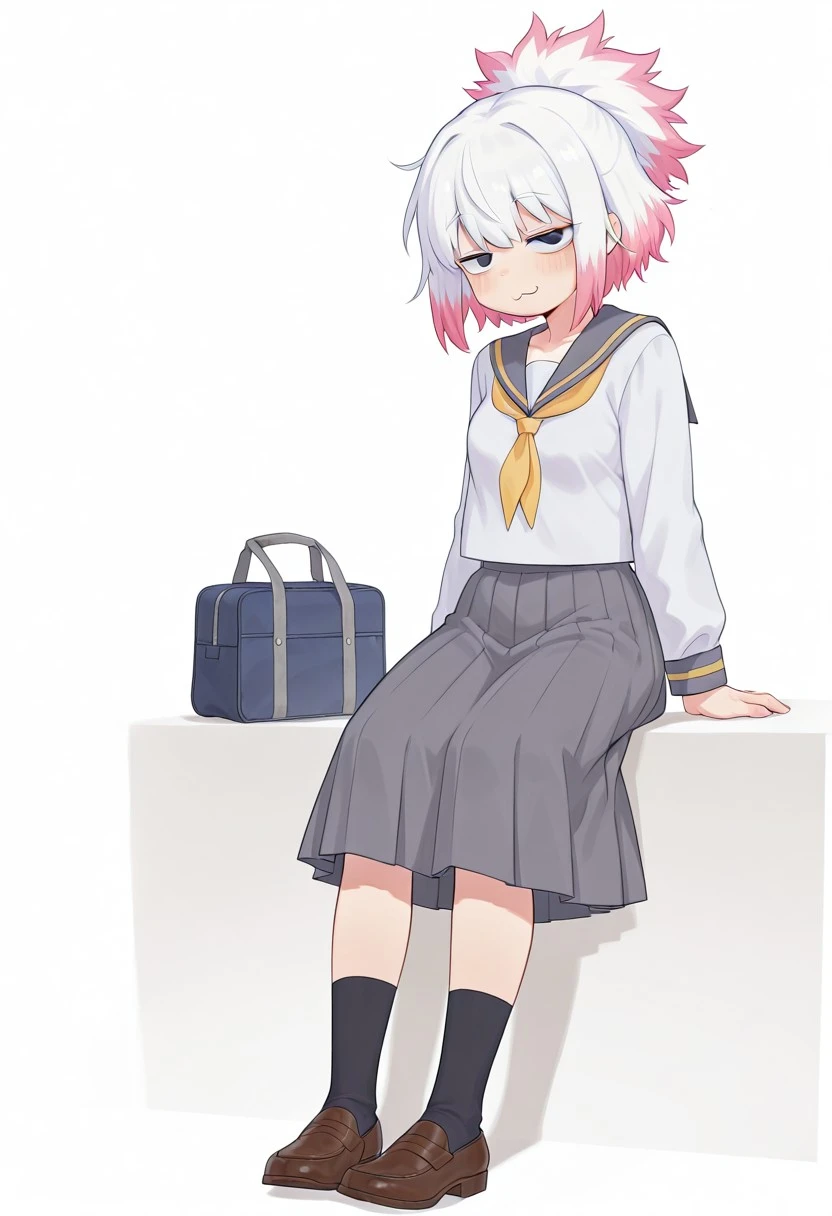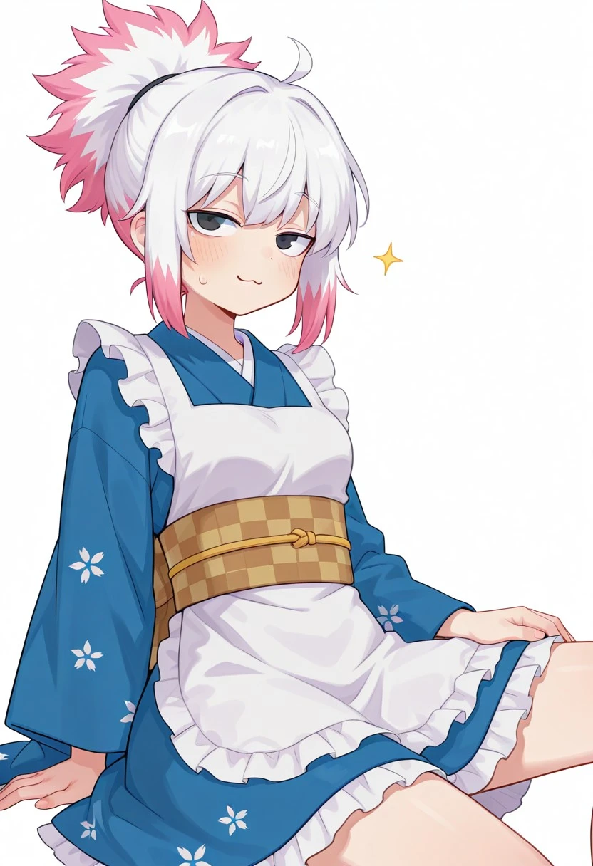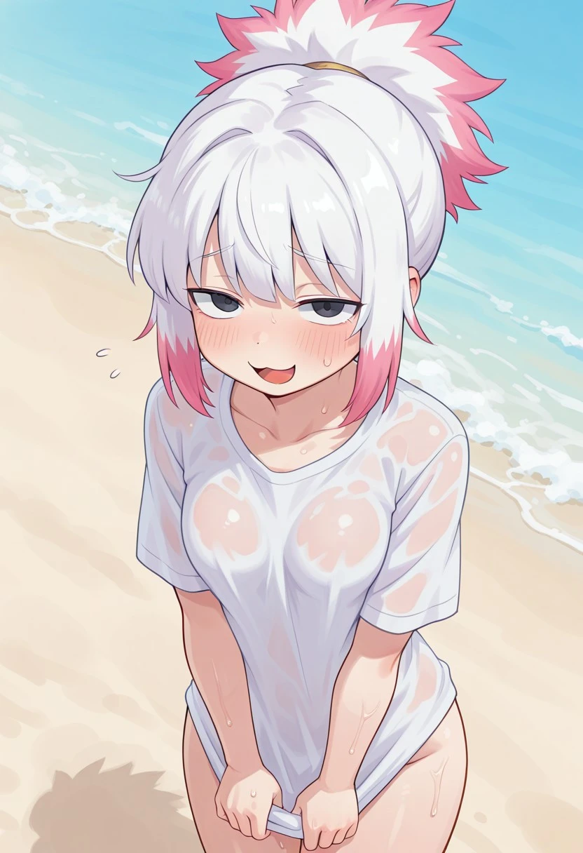 <lora:YozoraOogumaKDM-V1>,YozoraOogumaKDM, White hair , two-tone hair, pink tips,pink hair , black eyes, loose hair , medium breasts,:3,