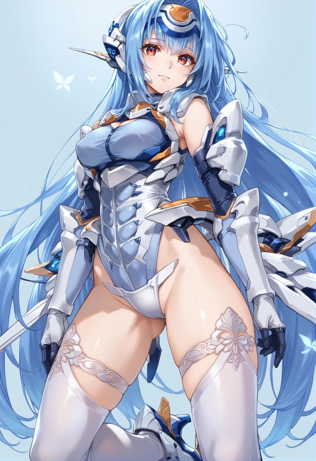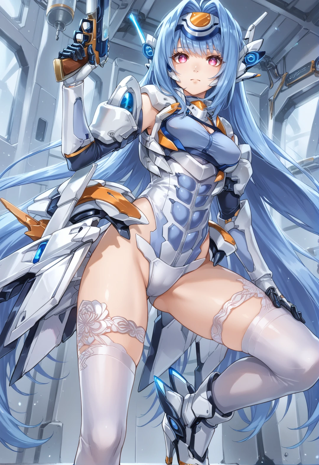 Tags (clothes): white forehead protector, white high heels, android, white elbow gloves, white highleg leotard