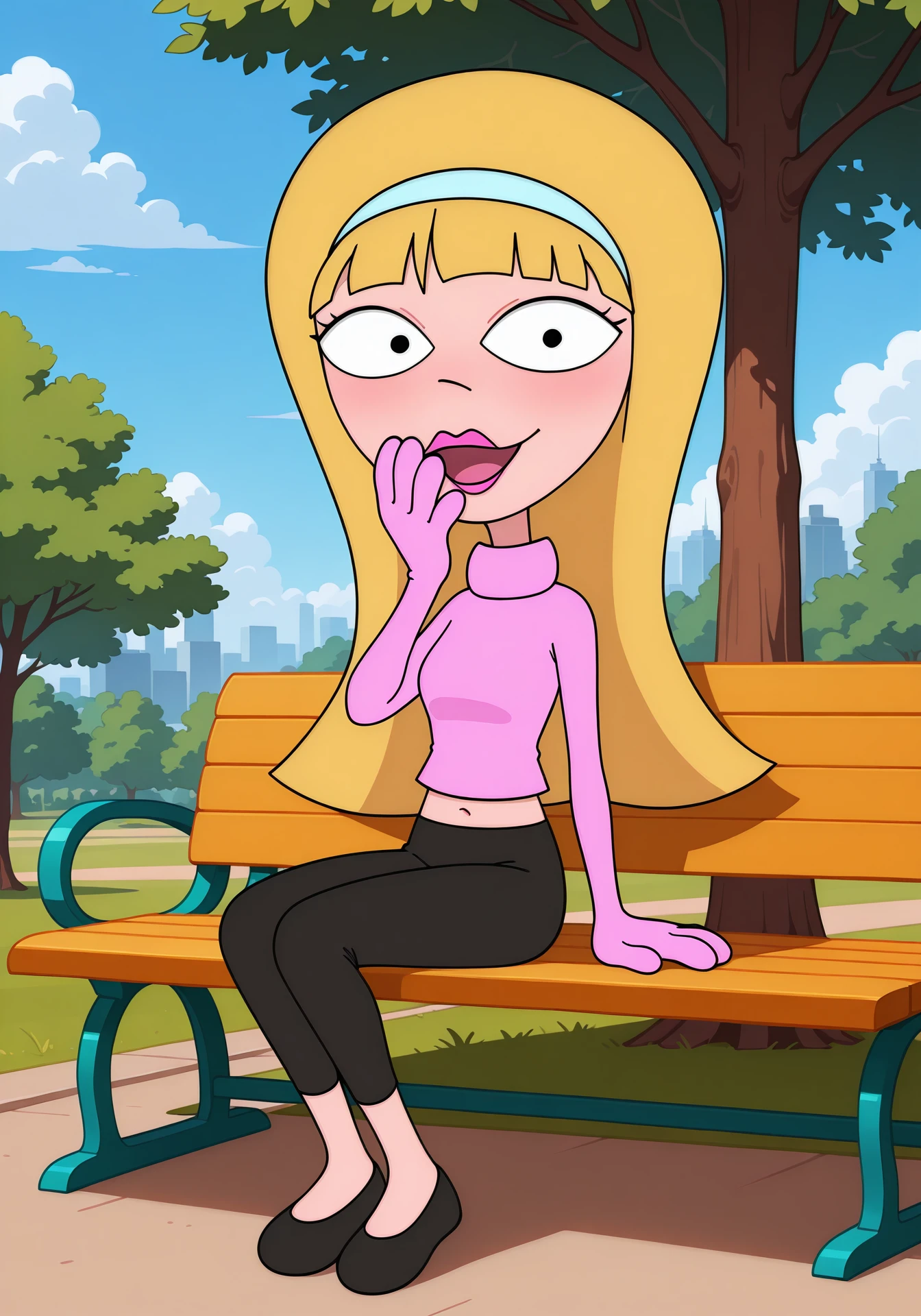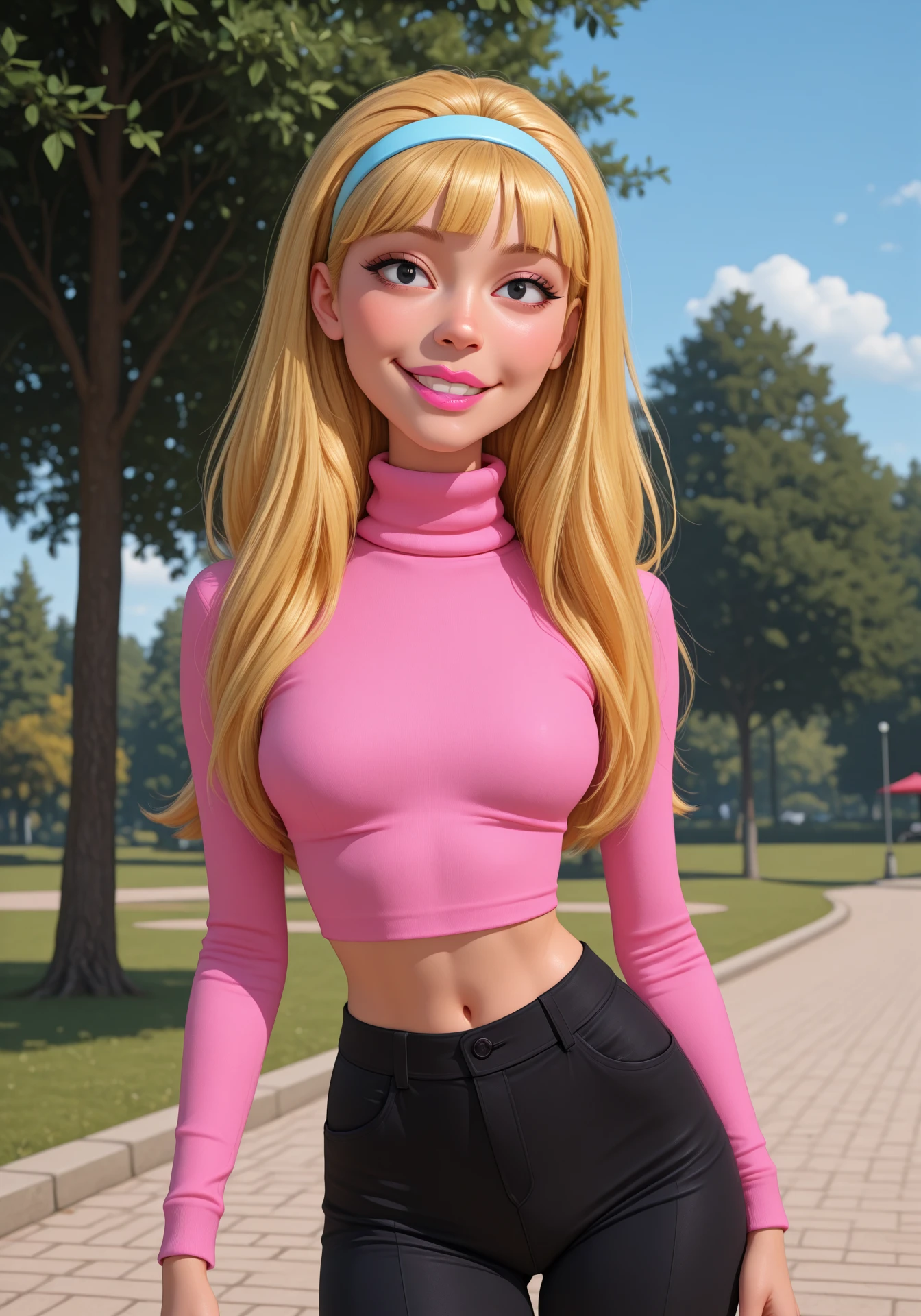 claricehomemovies, blonde hair, long hair, black eyes, pink lips, lipstick, hairband