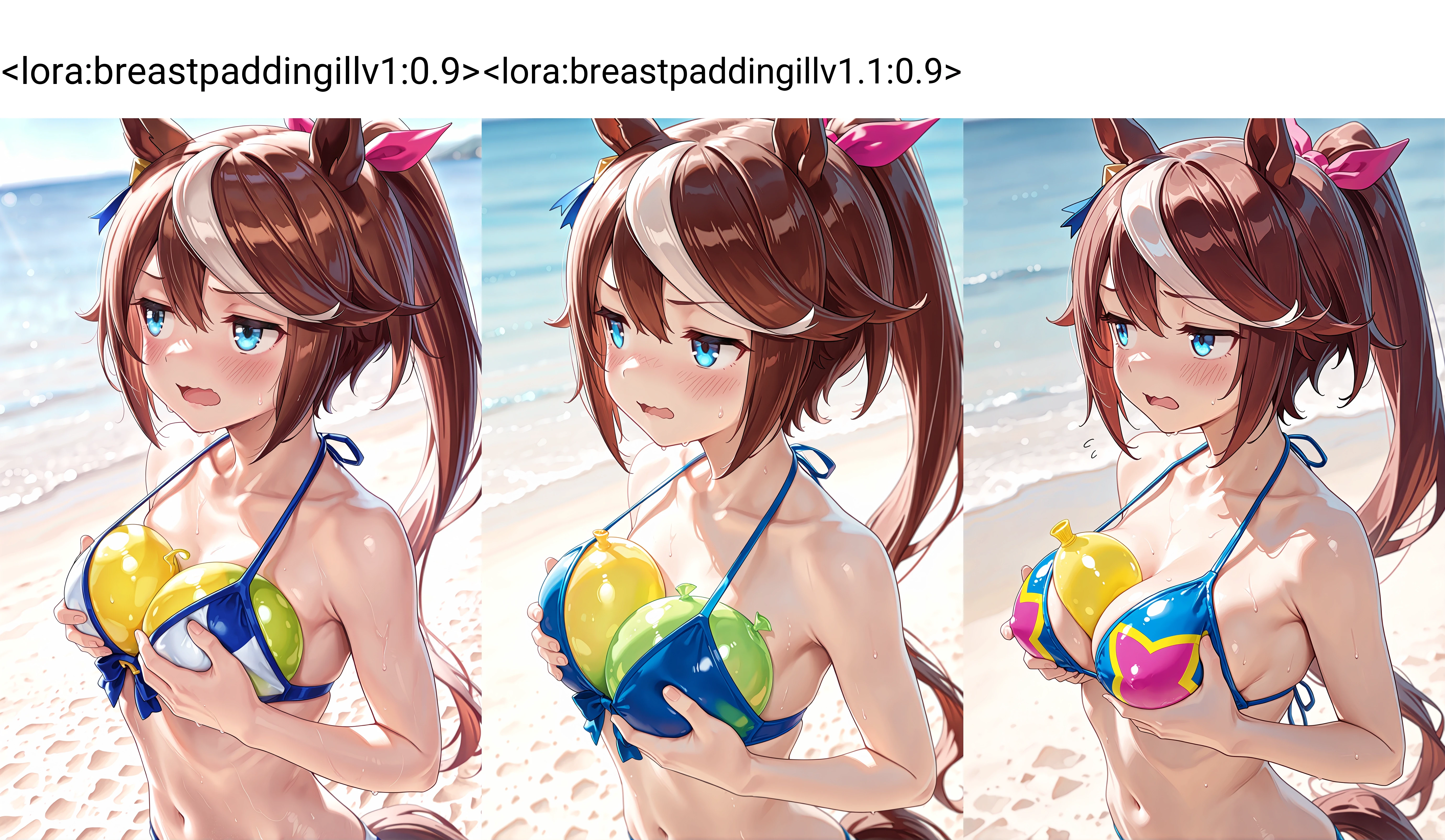 This Lora is for small only. Large are not recommended. Mainly stuff melon, melon bread, water balloons, etc. into the . Do not include -related prompts such as flat .