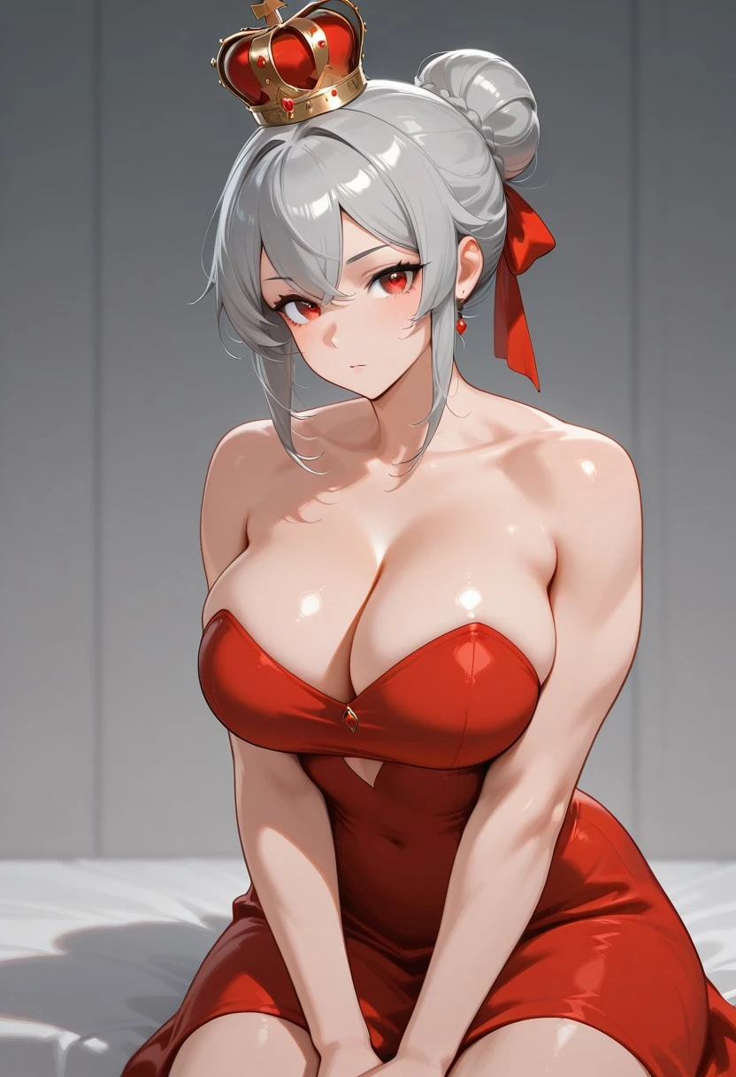 VIC_WYV, Single hair bun, crown, red eyes, voluptuous muscle