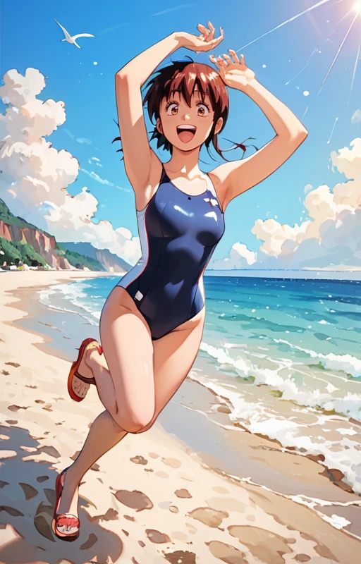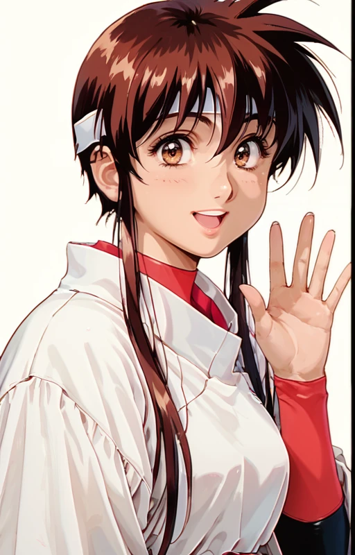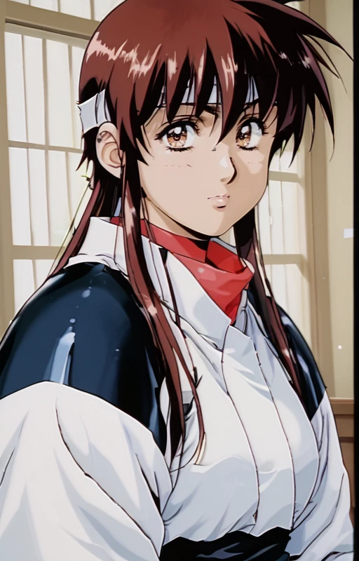 captaintita, solo, 1girl, brown hair, brown eyes, breasts, sidelocks, headband, long hair, looking at viewer, titasuit