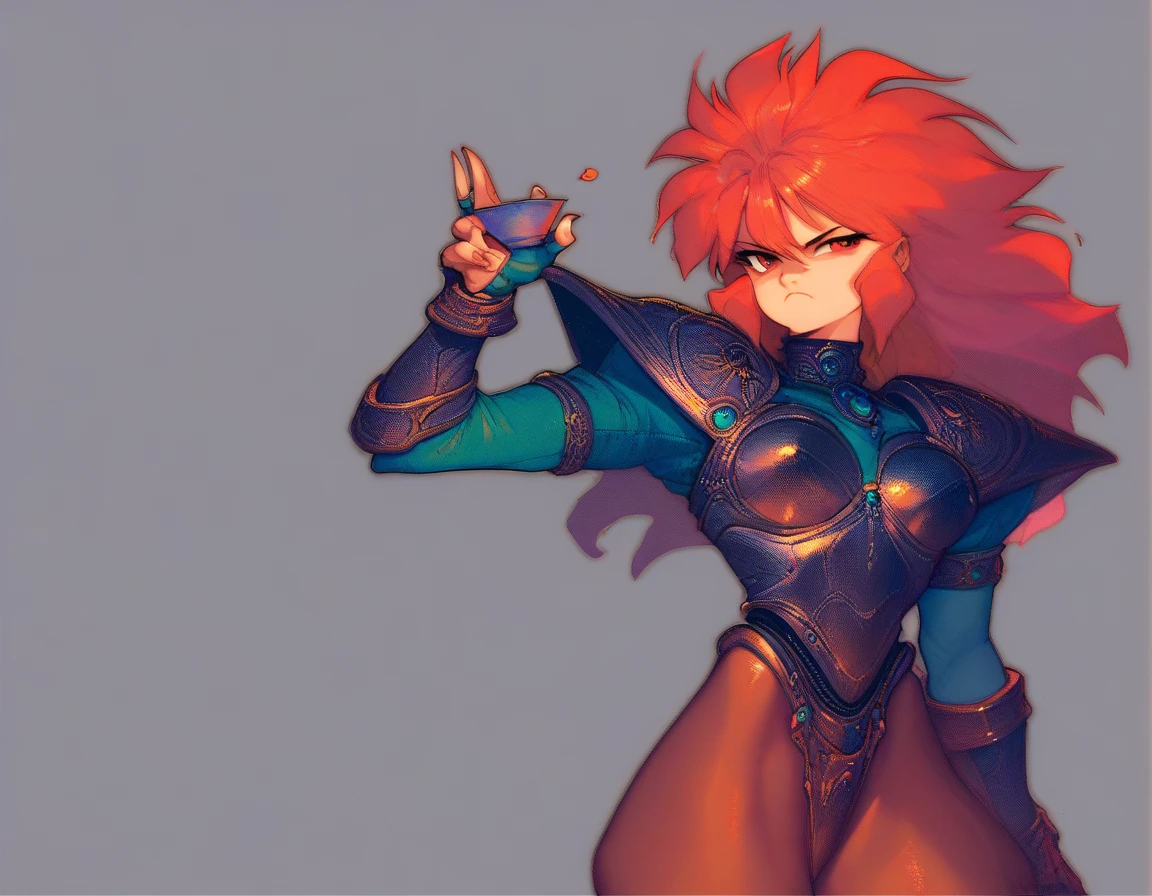 3) dragon charm, bikini armor, detached sleeves, vambraces, knee boots creates the outfit Mink is wearing in the anime. I spent a lot of time training each keyword separately, so you should be able to mix and match them, although you might need to add them to the negatives to stop them from bleeding into each other.