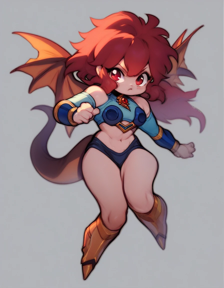 Default anime appearance: mink dragon_half, dragon horns, bikini armor, detached sleeves, vambraces, dragon wings, dragon tail, knee boots, dragon charm.