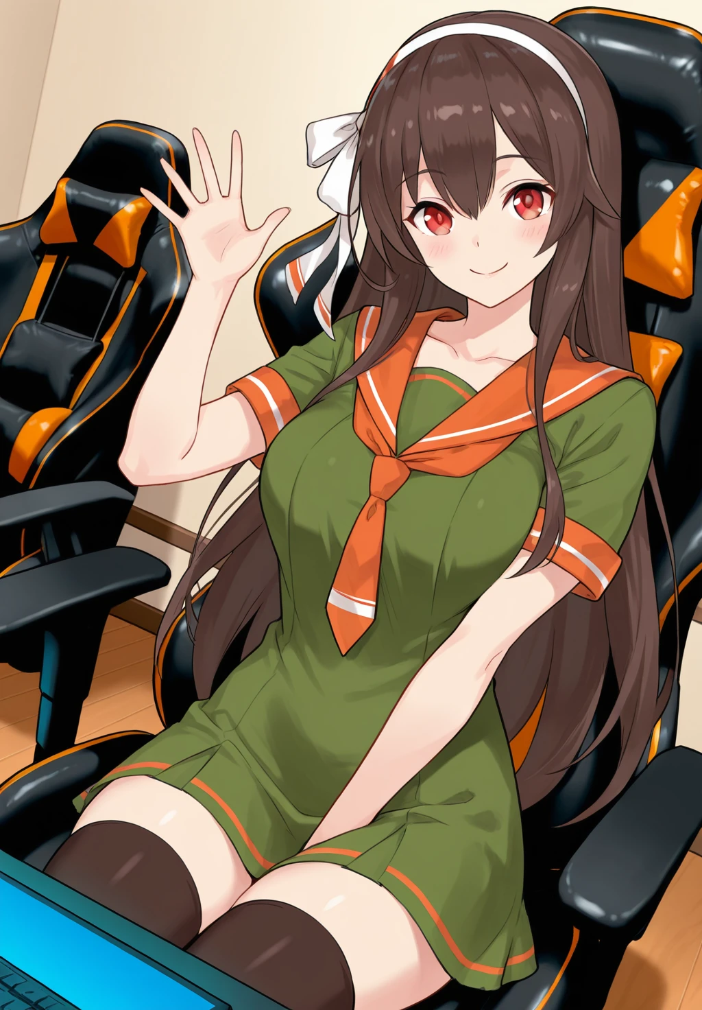 short sleeves sailor dress, orange neckerchief,靴下/袜子/thighhighs: