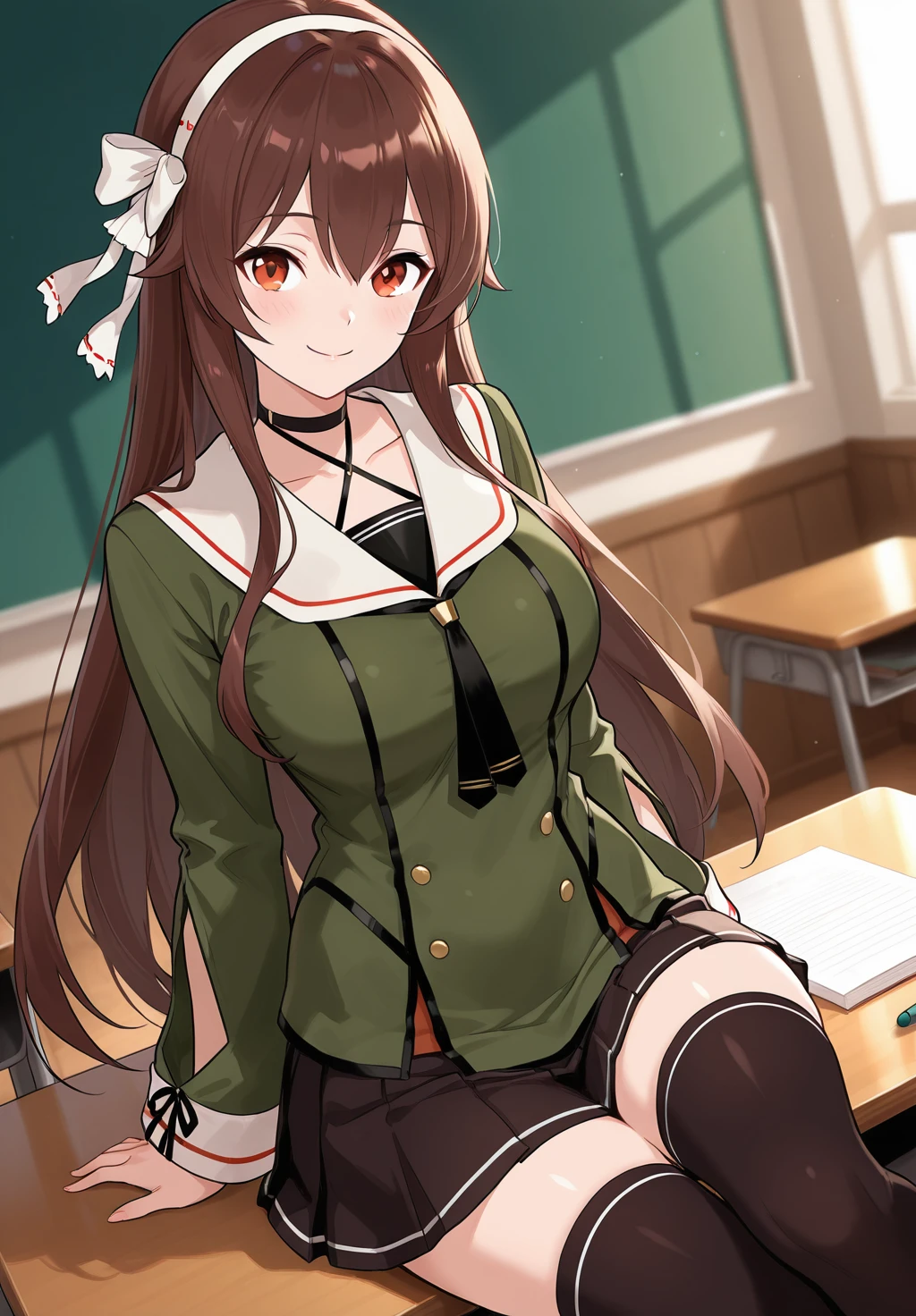 choker, uniform shirt, sleeves cutout, pleated skirt,