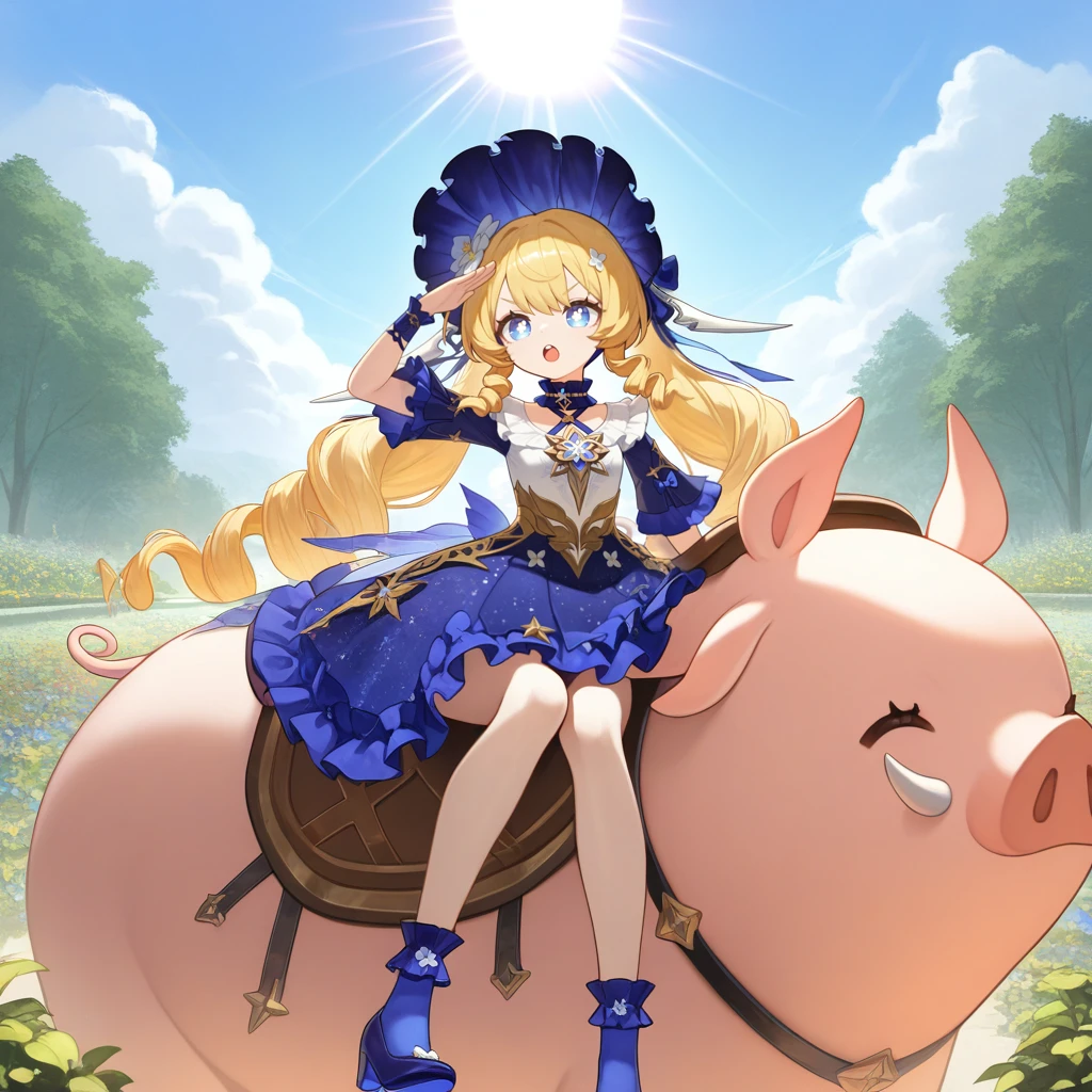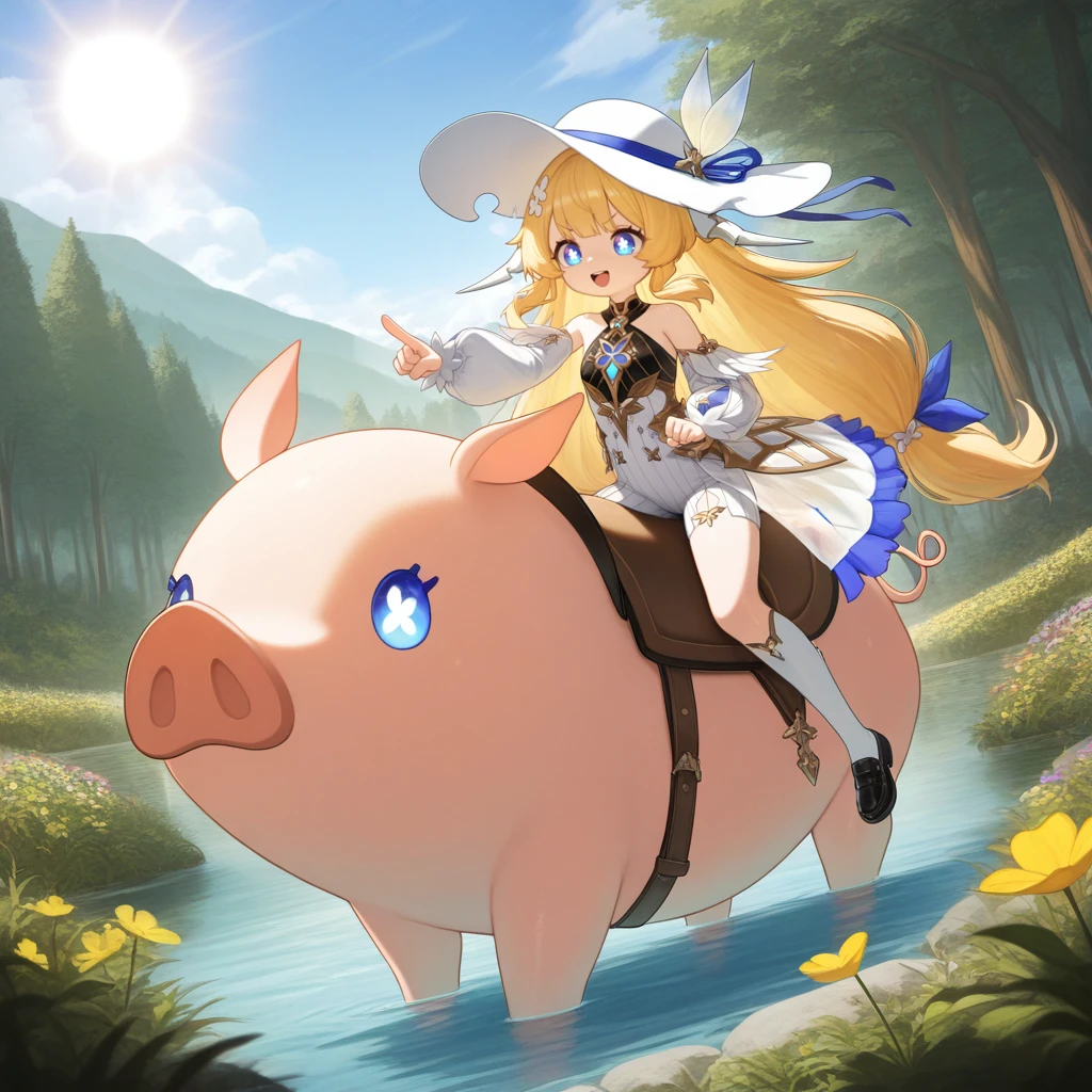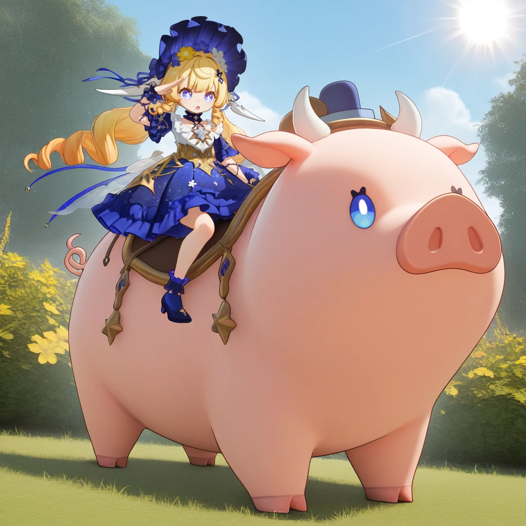 animal, pig, saddle, oversized animal, animal riding, riding, sitting on pig,Disclaimer: I've included the tags for Truffle riding on Filbert, but if you want her to stand near Filbert just remove "animal riding, riding, sitting on pig,"
