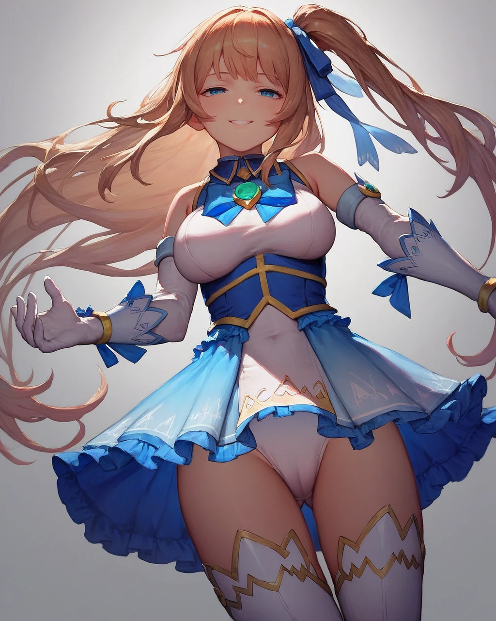 magical girl, celesdress, white leotard, white thighhighs, thigh boots, elbow gloves, white gloves,