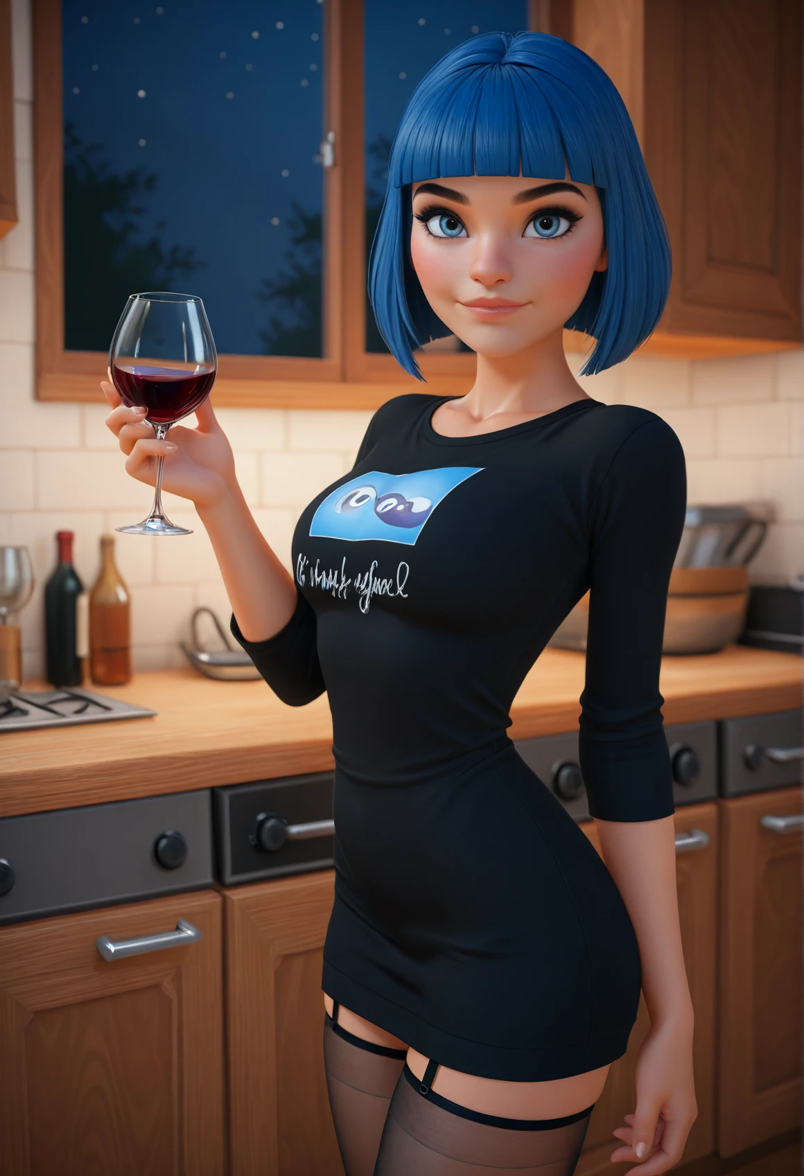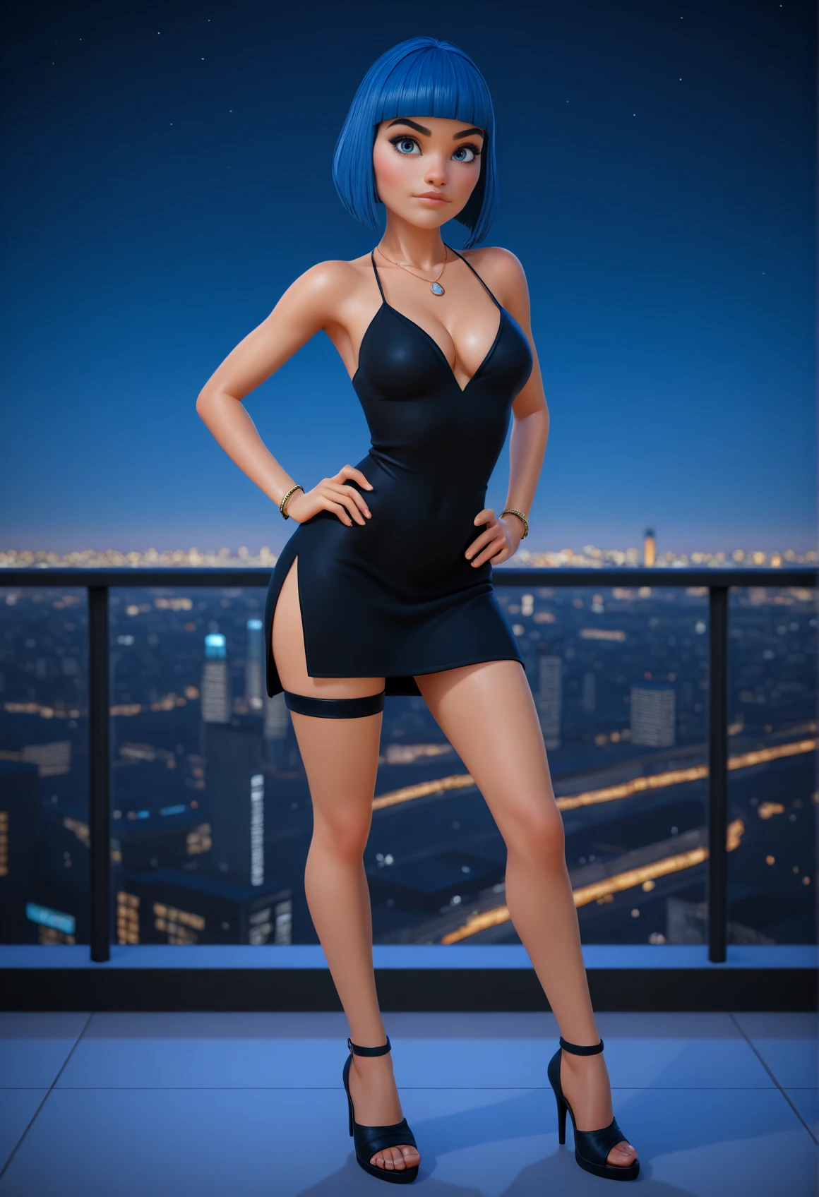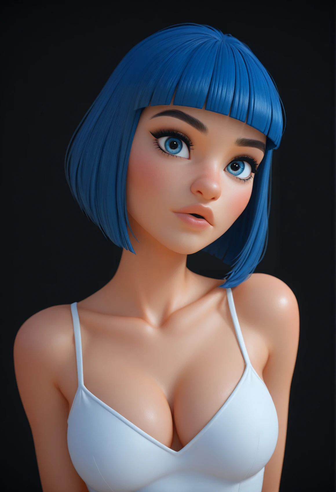 AvaCute, blue hair, short hair, blunt bangs, blue eyes, skinny