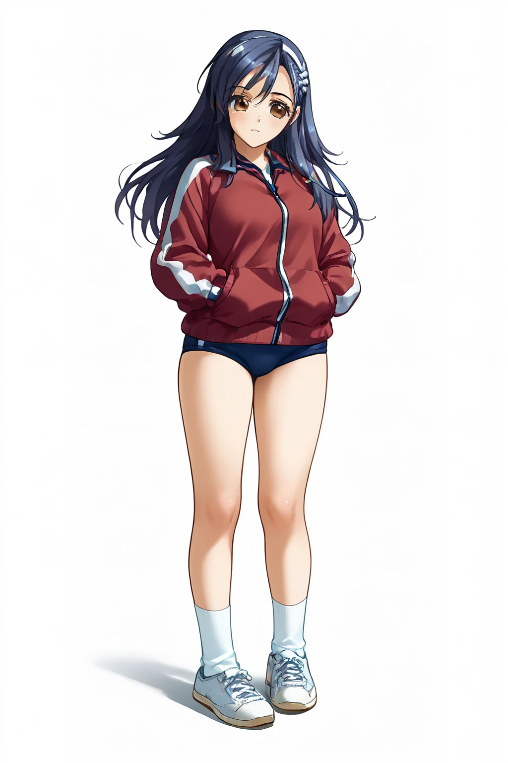 Gym uniform: socks,sneakers, gym uniform, red track jacket, blue buruma,open jacket,