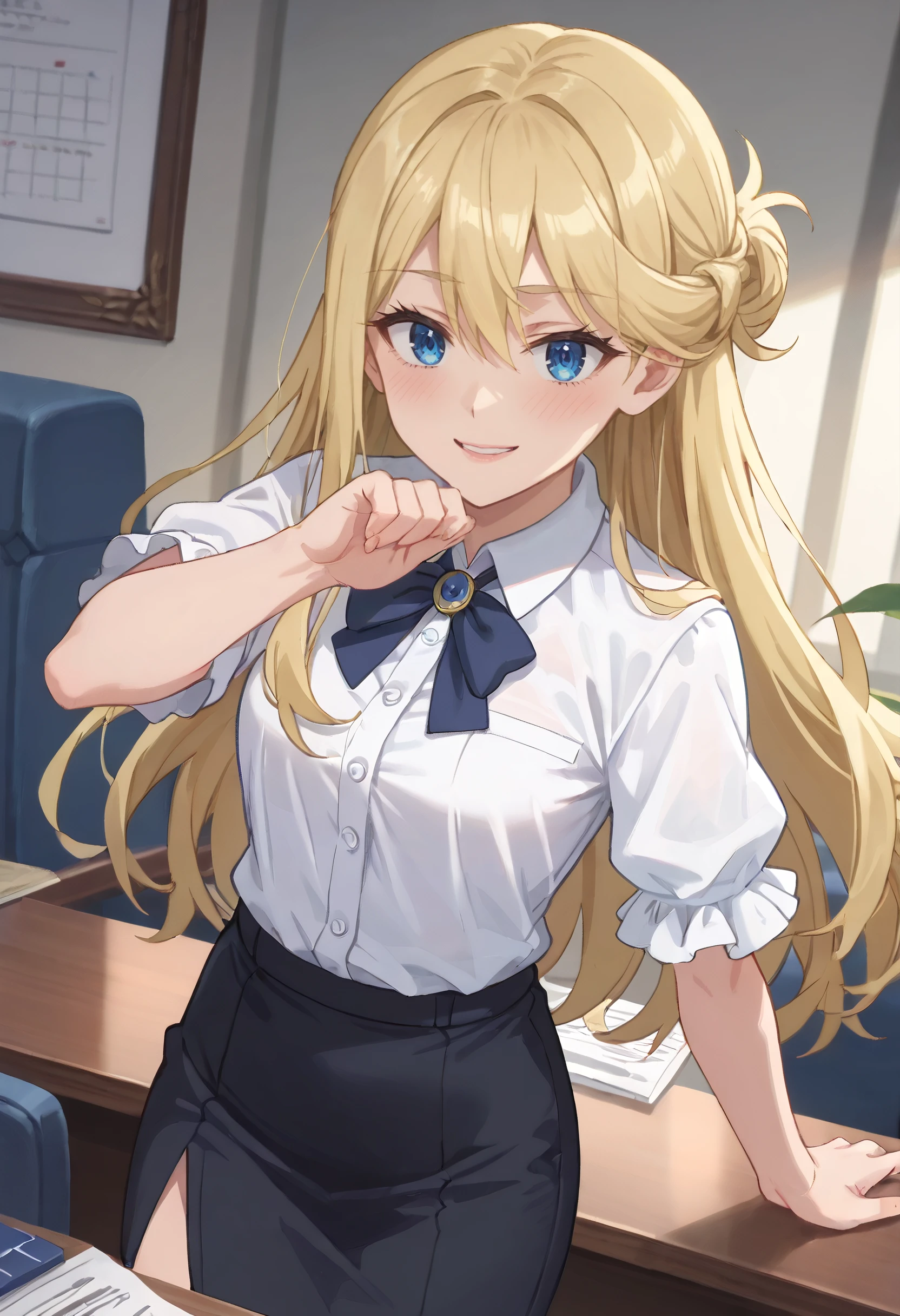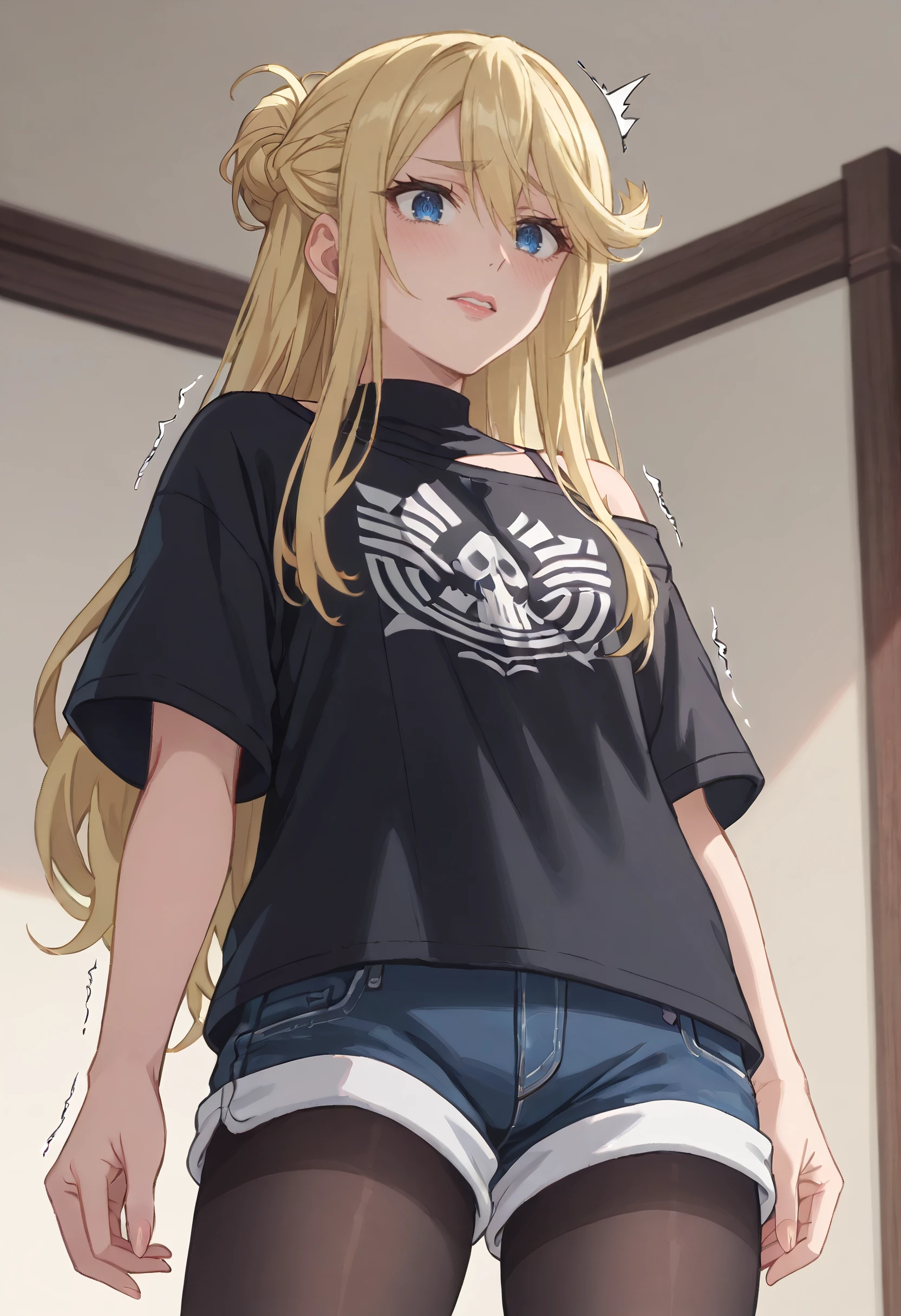 GirJessica, blonde hair, long hair, hair between eyes, bangs, blue eyes, eyebrows visible through hair, half updo,