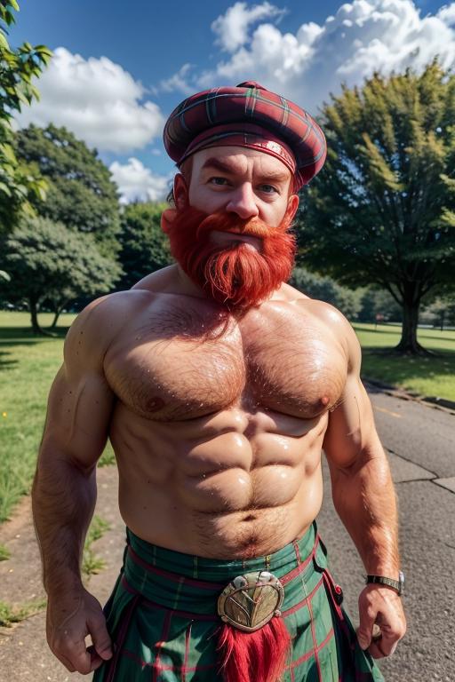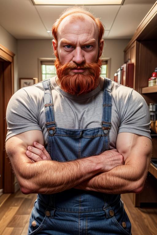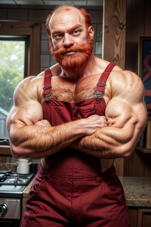 I suggest in the prompt to use: "red hair, receding hairline, balding, hairy, beard, muscular", for a better effect.