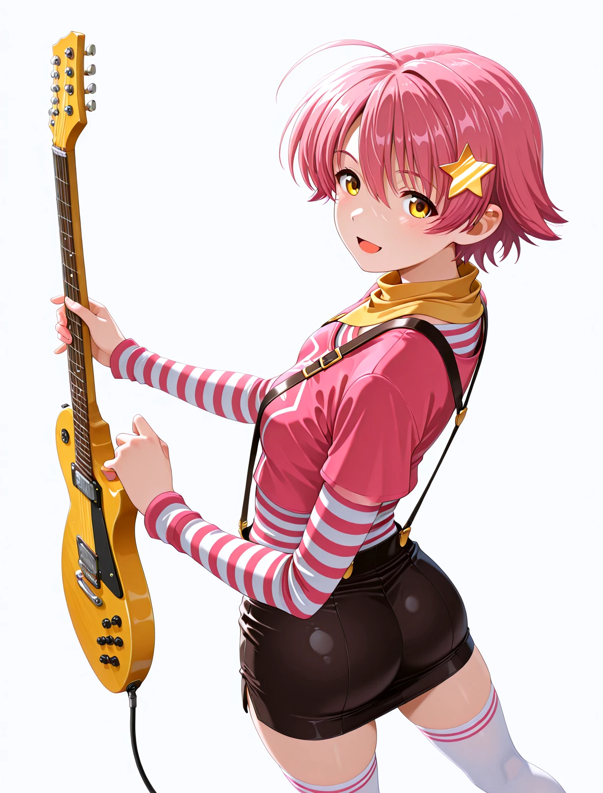 舞台衣装 : Stage costume jacket,yellow scarf,striped shirt, Stage costume skirt, thighhighs, suspenders