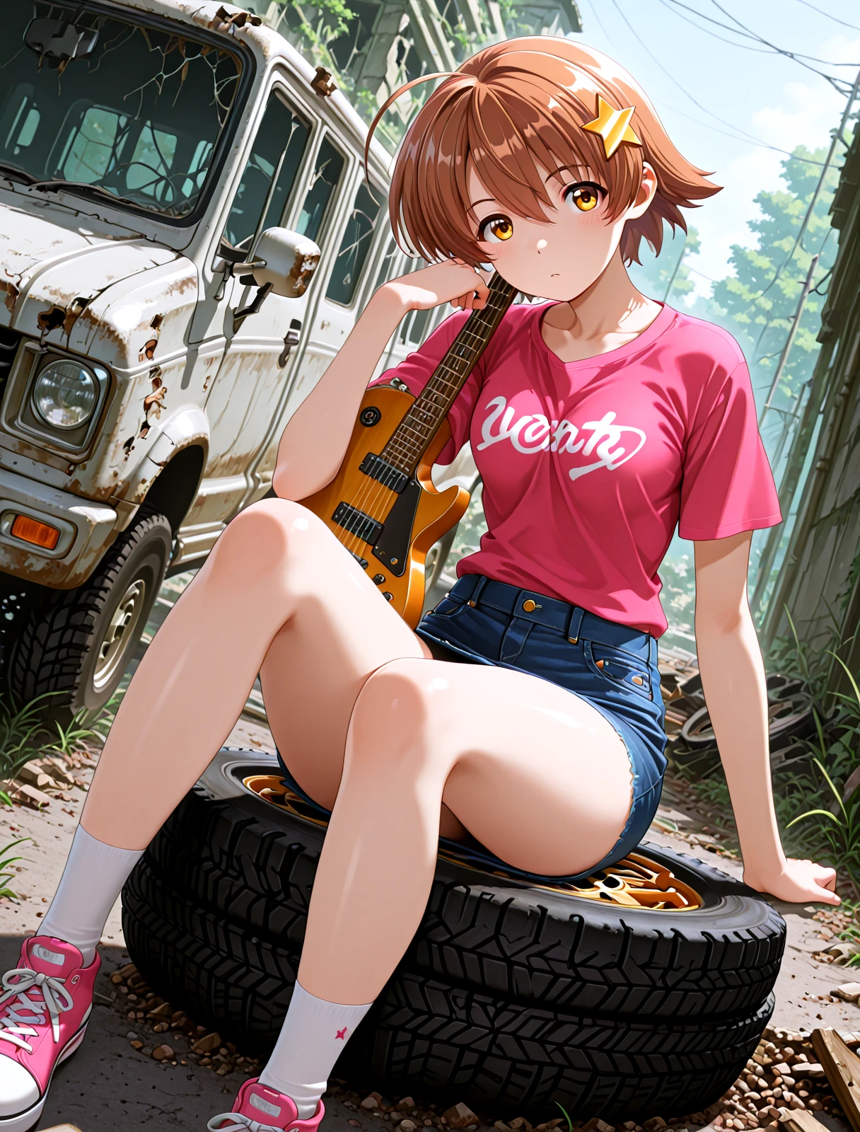 ギター : Yellow guitar, playing guitar