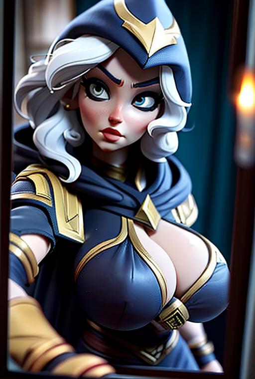 25 renders of Ashe model by Anonymous Frankenstein. However, can generate Ashe with normal proportions too.