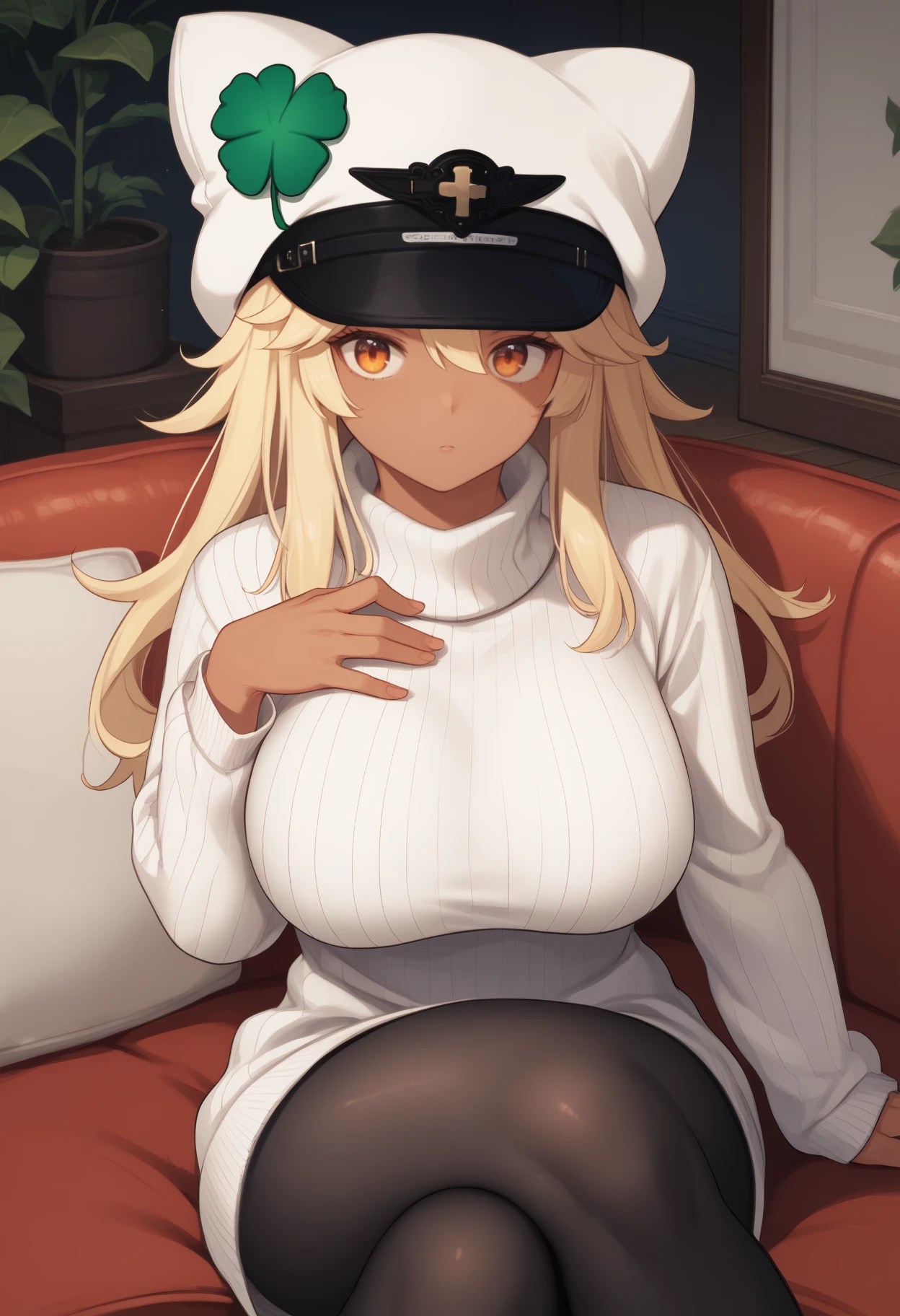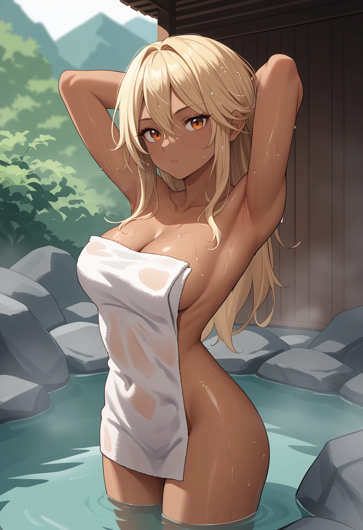 rmlthlvltne, dark-skinned female, long hair, blonde hair, orange eyes