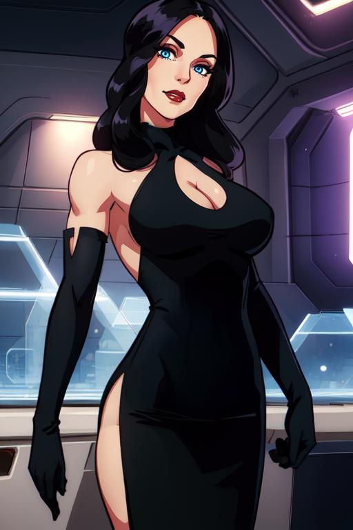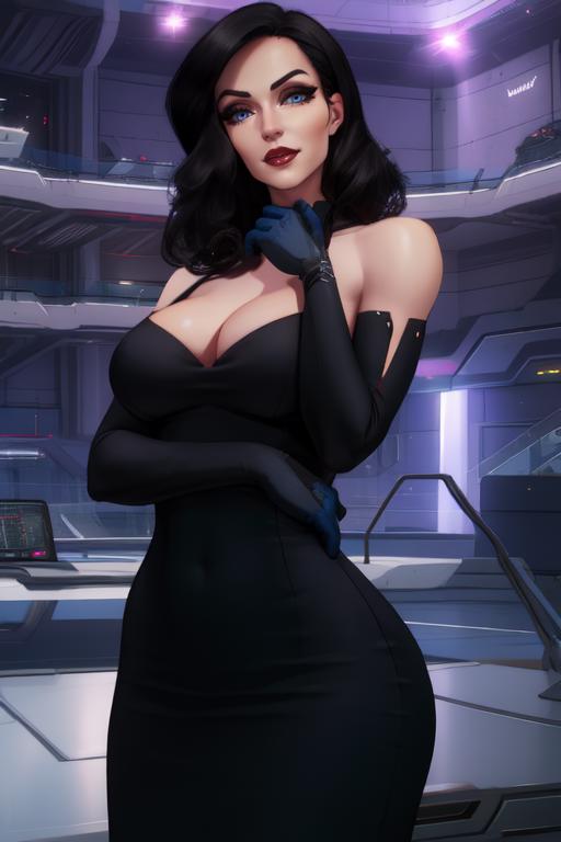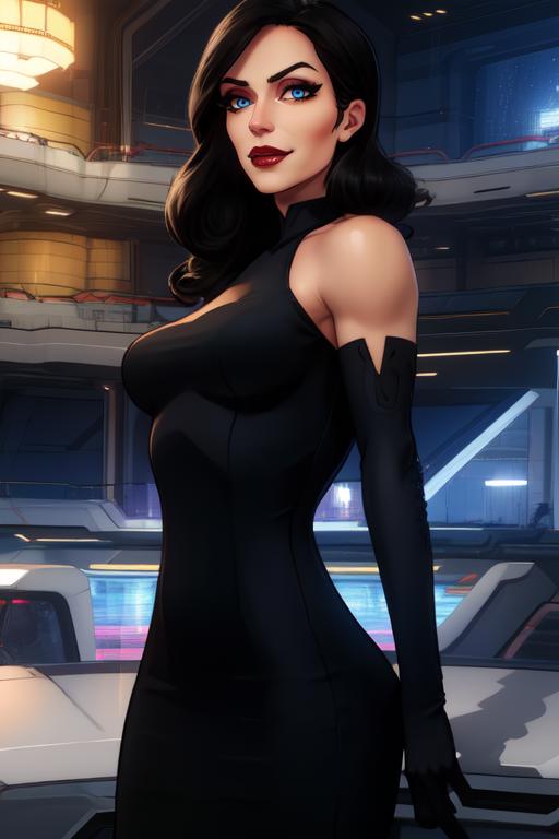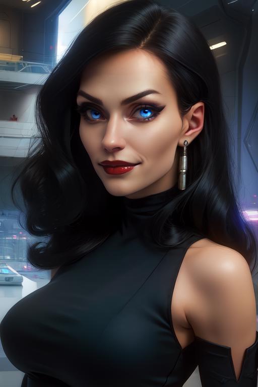 Brimstone, black hair, lips, blue eyes,