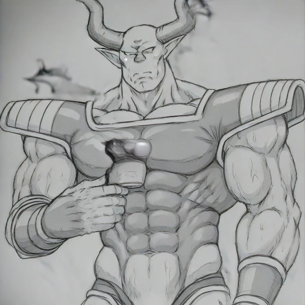 Shisami, red skin, horns, fit, muscle, body hair, pubic hair, armor, gloves, eye scanner, short, muscular, low, male, evil, gloves, boots, menacing, torso turned, perfect hands, Frieza Force style armor, elite member of Frieza Force