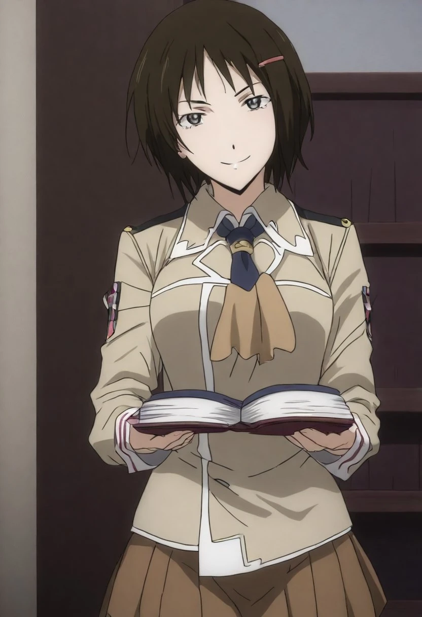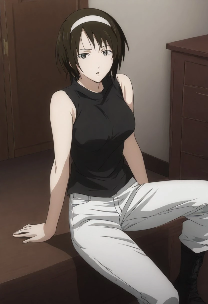 1 girl, solo, LeeBB, dark brown hair, short hair, grey eyes, white hairband, white military uniform, white pants, black boots