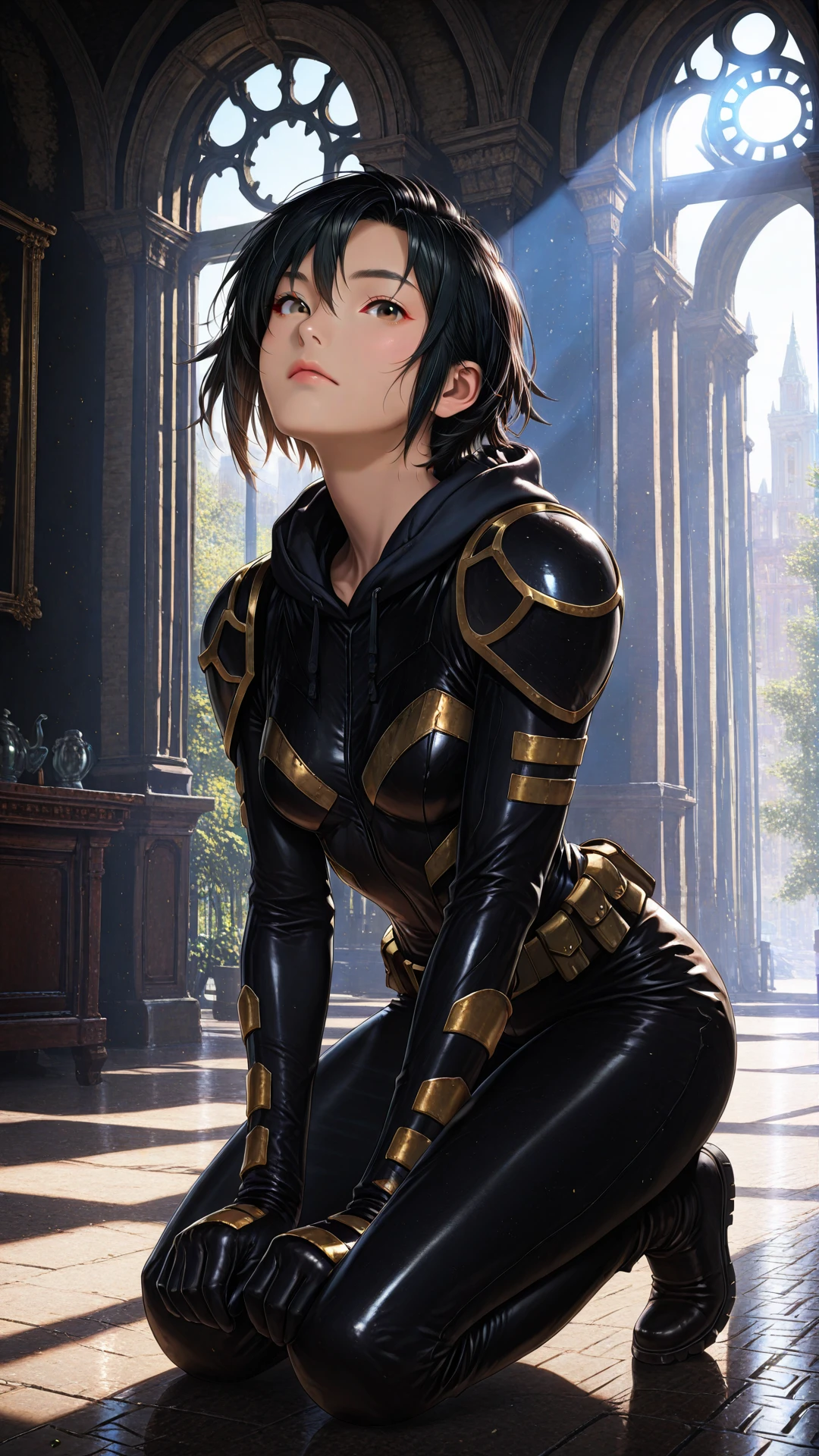 cass_orphan, short hair, black hair, brown eyes