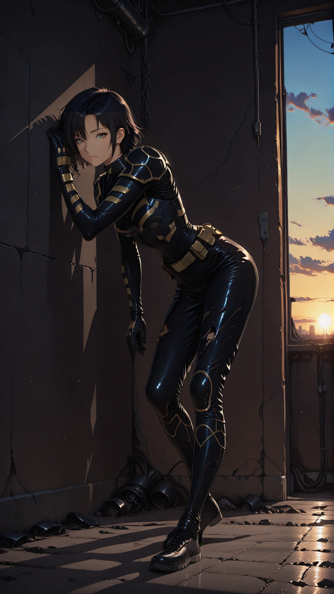 orphan_costume, shoulderpads, kneepads, utility belt