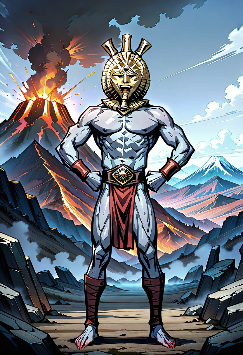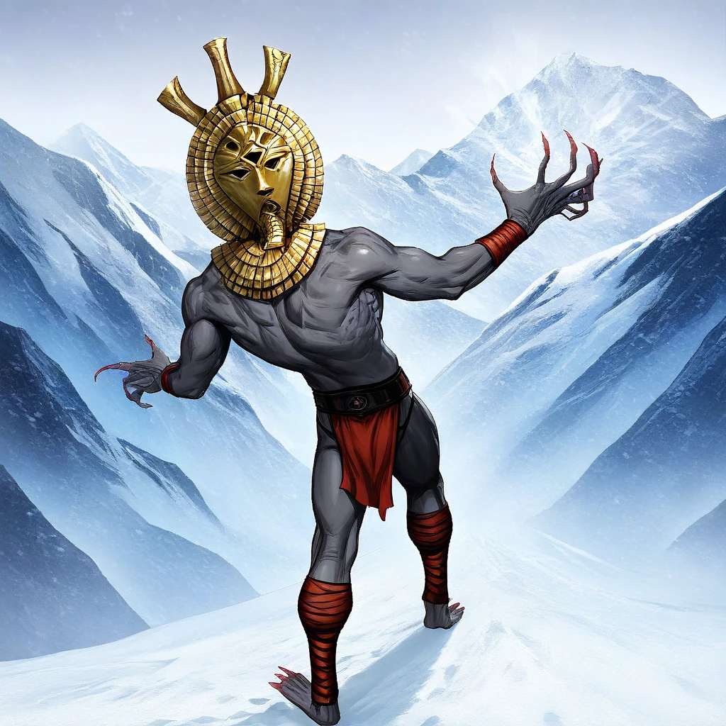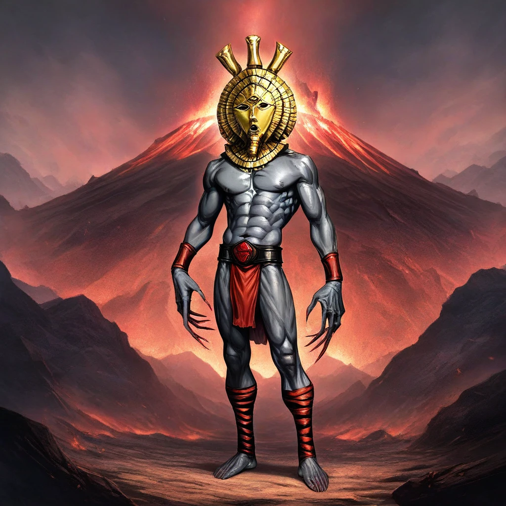 Tags: DagothUr_TES3, grey skin, colored skin, gold mask, mask, third eye, gorget, gold gorget, ??????? male, muscular, abs, belt, loincloth, bracer, long fingers, long fingernails, sharp fingernails, ankle wrap, barefoot,