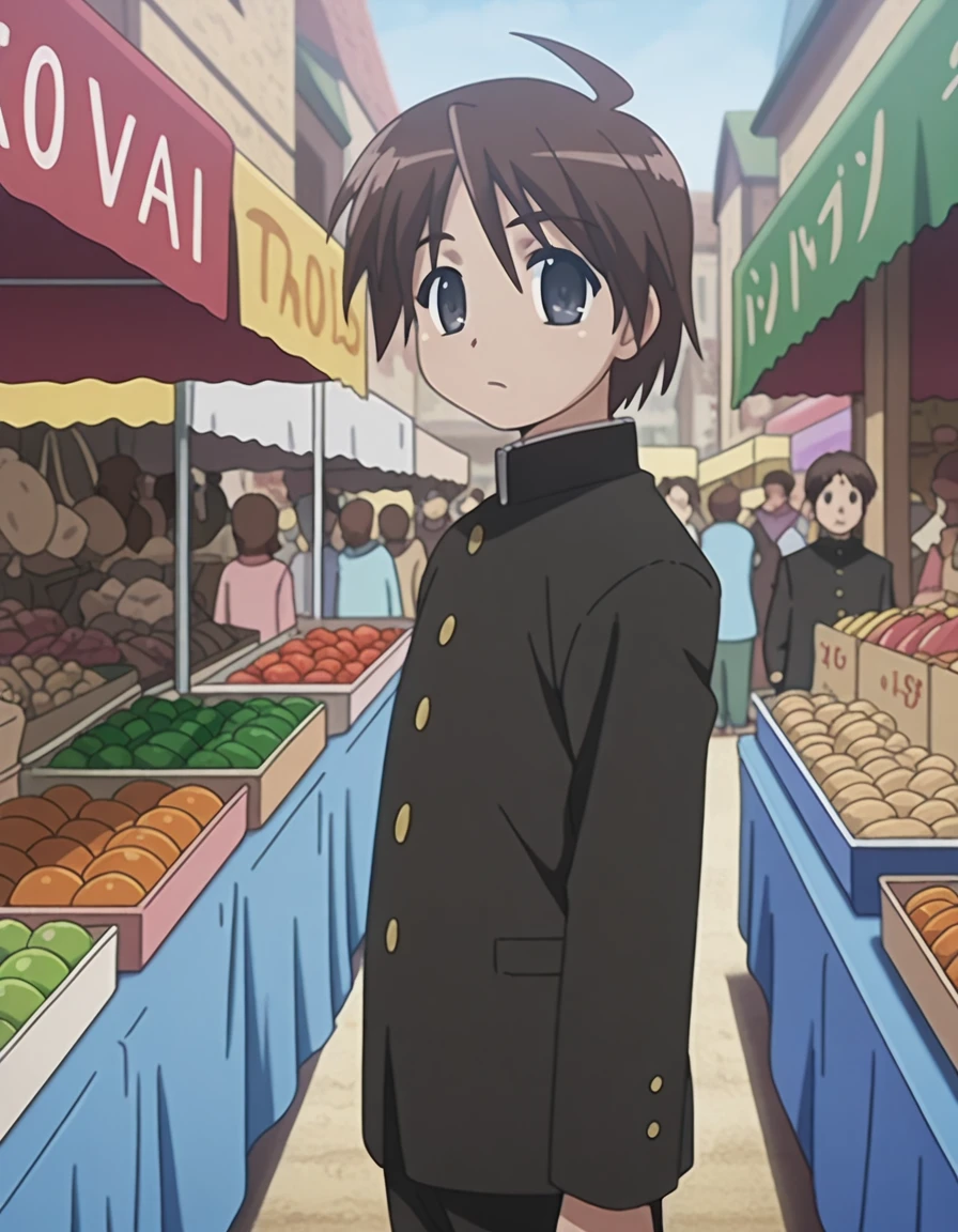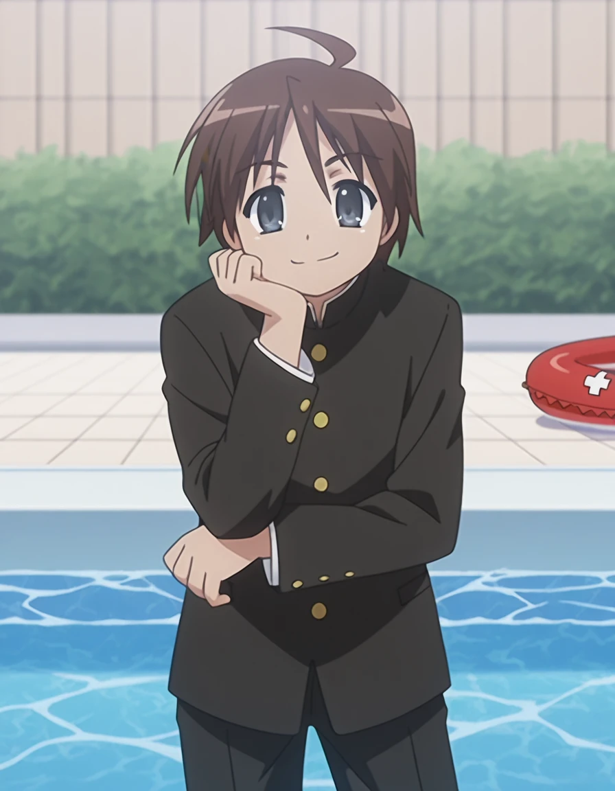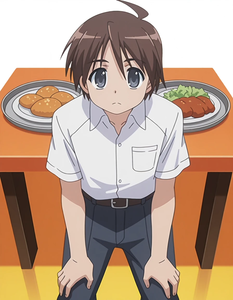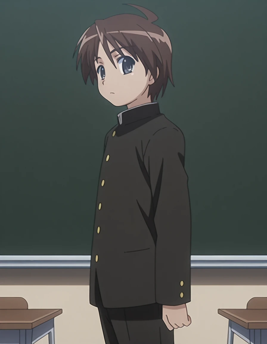 yuuji sakai, brown hair, ahoge, male focus, black eyes, anime screencap